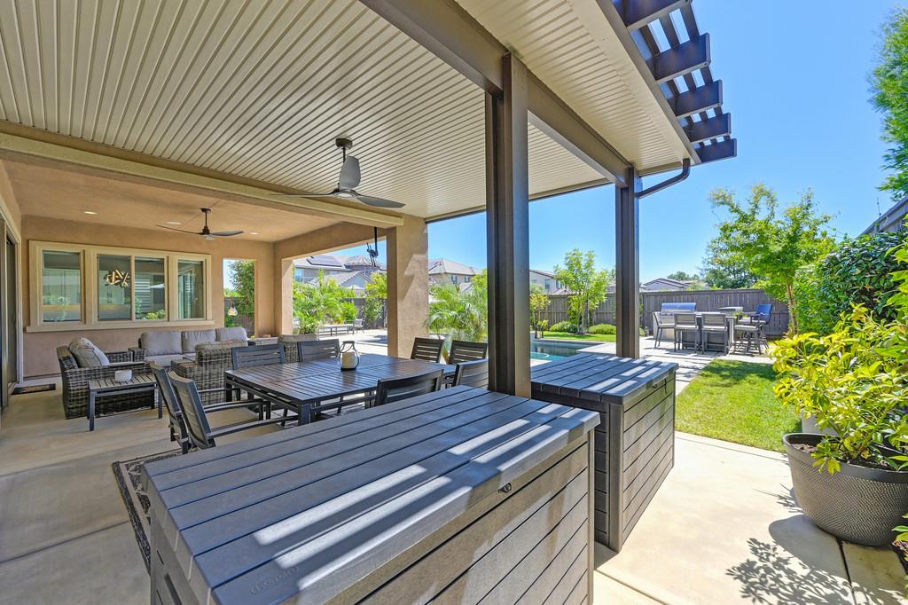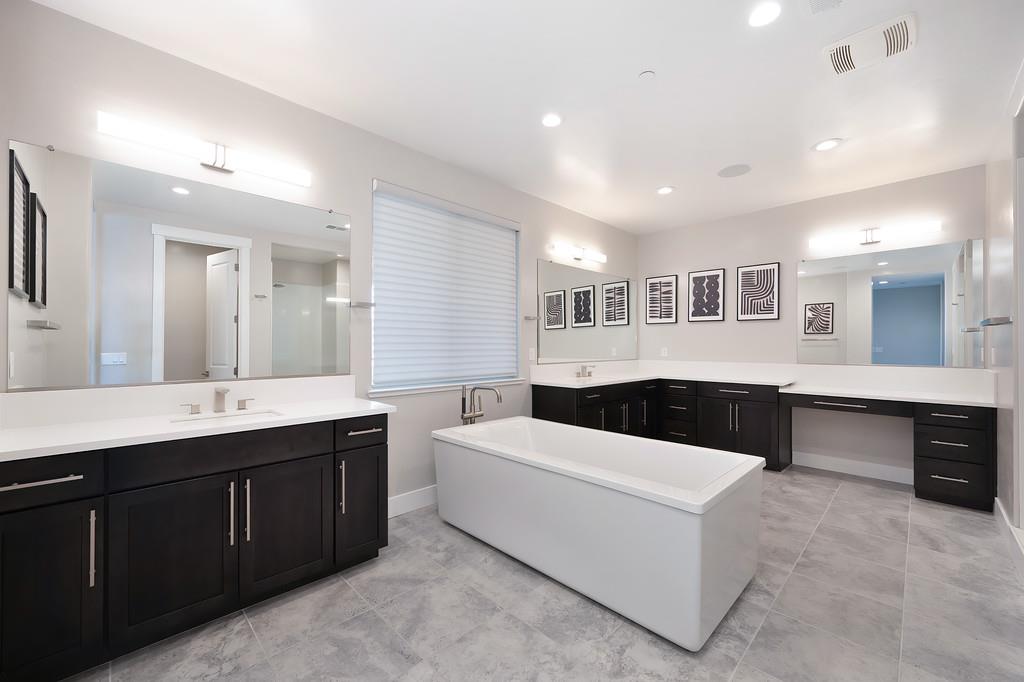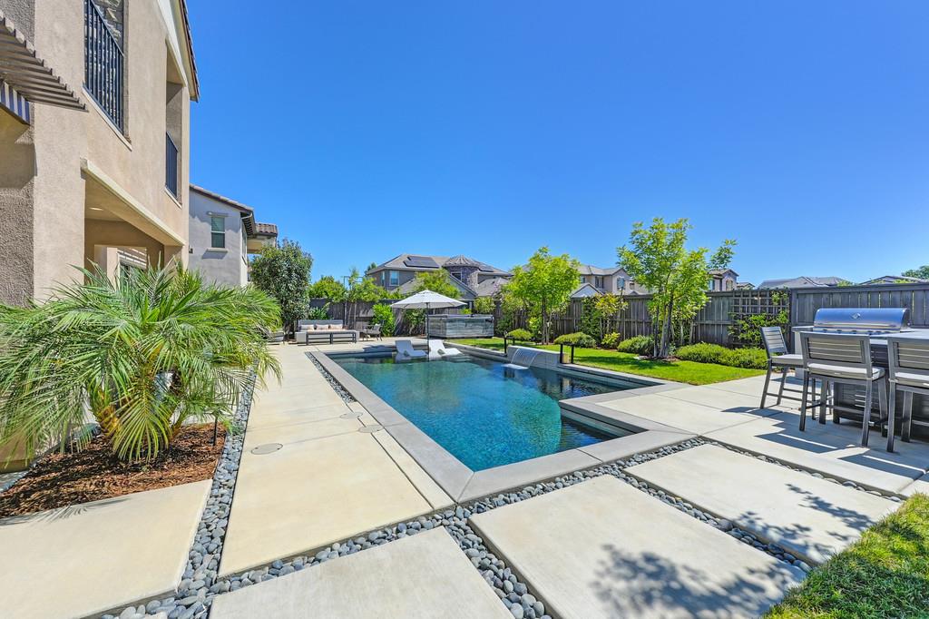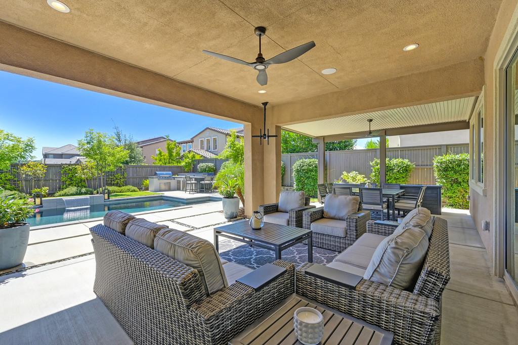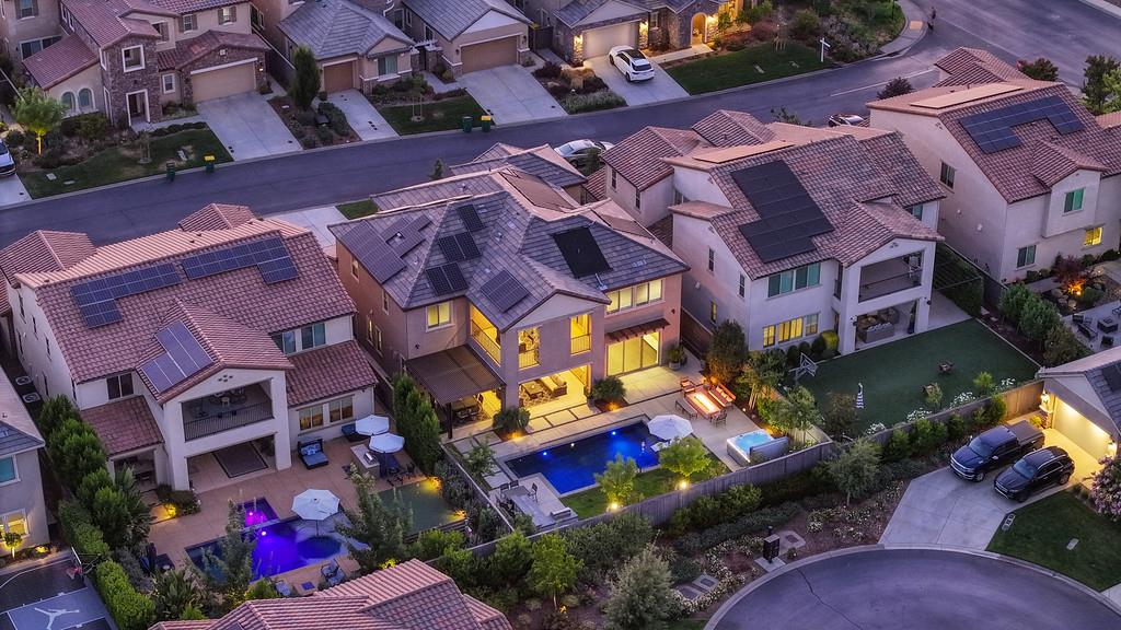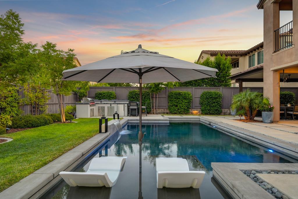 726 Wyeth Court in Serrano's Country Club community offers 4,475 square feet of living space - 5 bedroom / 5.5 bathroom home blends modern elegance and functional design with not one, but two primary suites, perfect for multigenerational living. The main floor with sweeping staircase, modern form designer chandeliers, expansive great room with fireplace and custom barn door which connects to a versatile flex work space, and Junior Primary Suite w/ it's own washer & dryer, enhances the overall living experience downstairs. The kitchen is incredible, boasting top-of-the-line Wolf appliances, SubZero 145 bottle wine fridge, dual freestanding SubZero refrigerator/freezer, and endless counter space. Upstairs has its own expansive family room/loft, Main Primary Suite with covered balcony and fireplace that overlooks the beautifully landscaped backyard. Owned solar for the home and pool keep everyone comfortable all summer long! Step outside through multi-panel stacking doors that offer access to your resort style backyard oasis with extended covered patio area, built-in custom bbq kitchen, gas fire lounge, gorgeous pool area, and Bull Frog Hot Tub! Control your home's sound system and all other features with state-of-the-art Control4 automation.