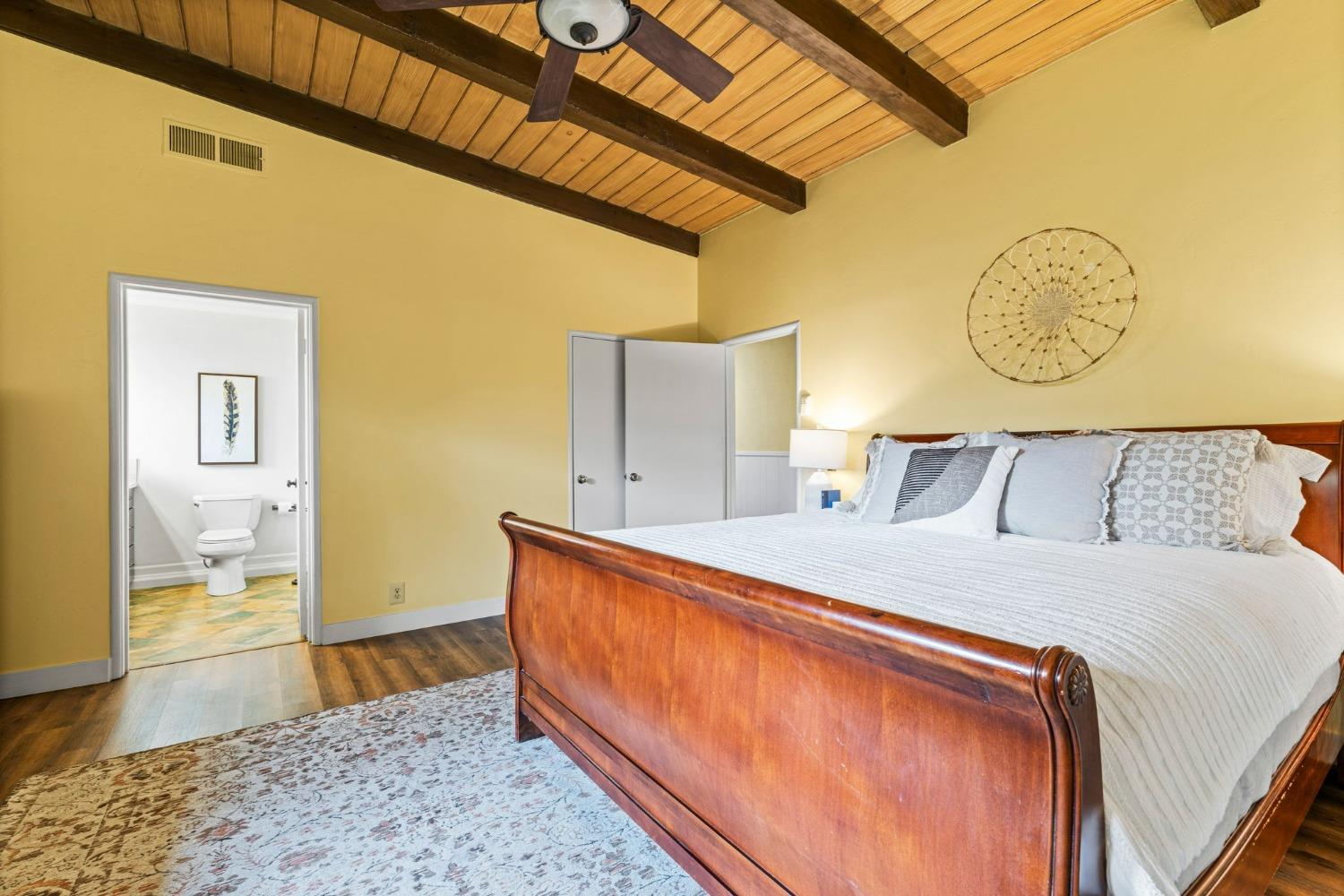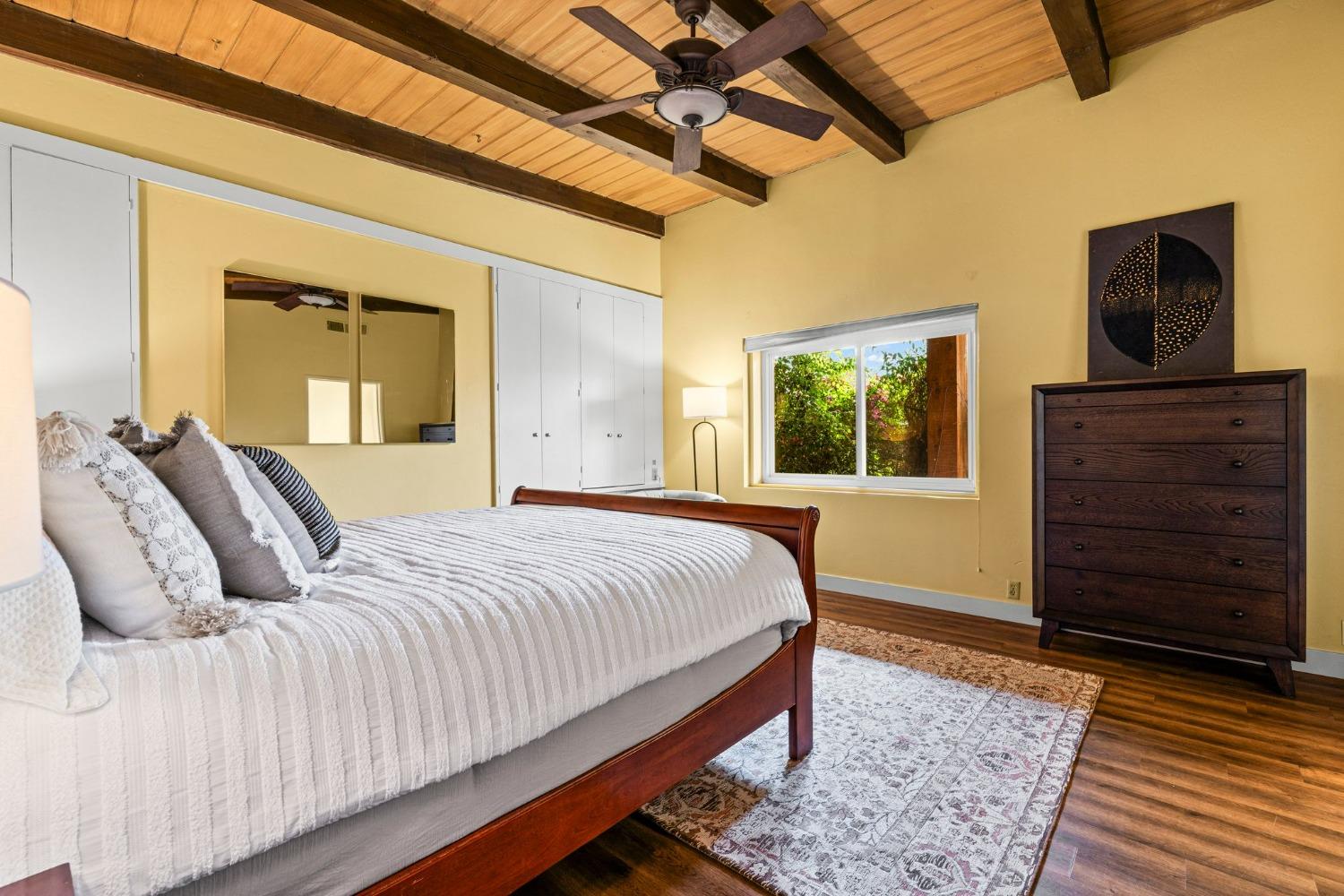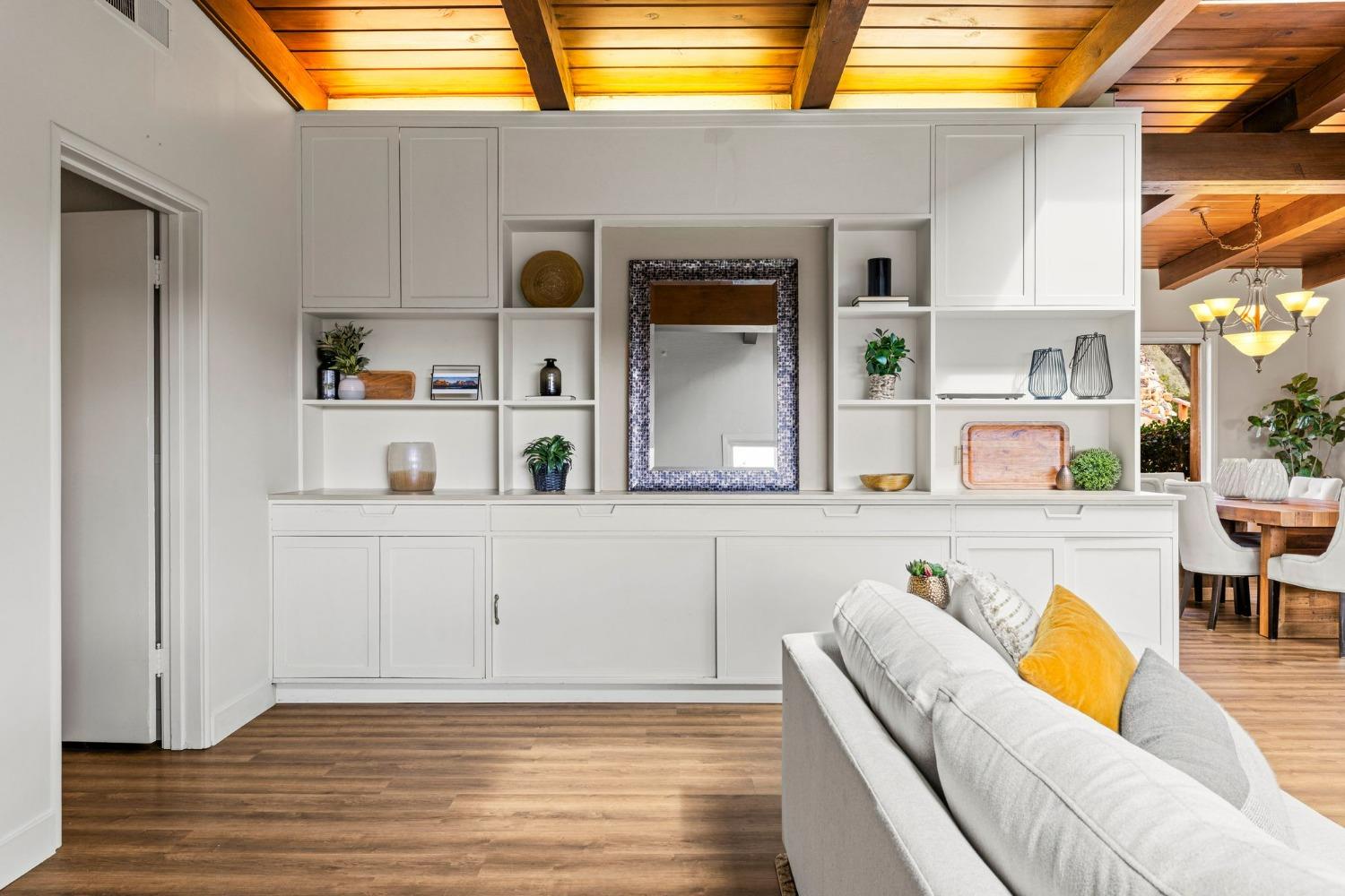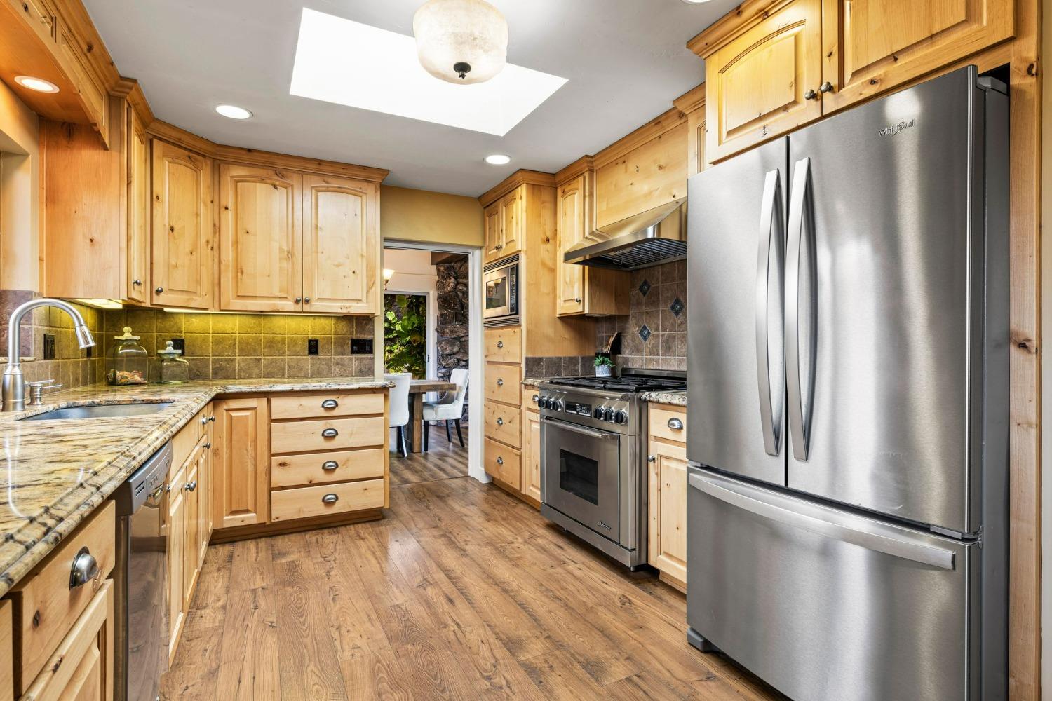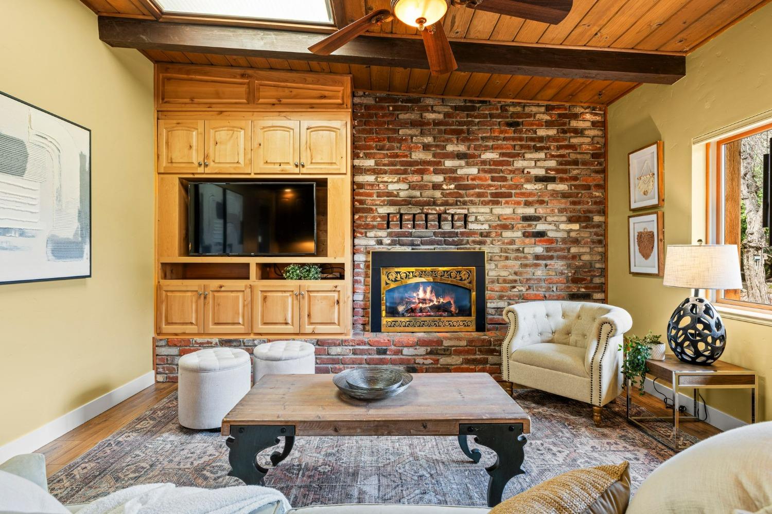 Discover the perfect opportunity for a multi-family, homesteading estate on a private, tree-lined expanse with breathtaking pastoral views. Formerly a cattle ranch, this property features 4 1/2 acres, lush pastures, a 3-stall barn, and an approx. 900 sqft Ponderosa-style second home. Conveniently located close to Historic Placerville, this Mid-Century modern home boasts a charming knotty pine & wood beam ceiling, a stone fireplace, and a bright atrium. The remodeled kitchen is equipped with a chef's 6-burner range, custom cabinetry, granite countertops, and stainless-steel appliances, complemented by new laminate floors throughout. Outside, enjoy and a saltwater pool, fenced orchard & chicken coop & 3-stall barn. The property is gated, offering RV parking and dump facilities along with owned field mounted solar.