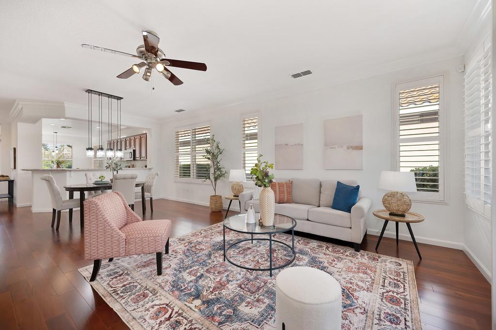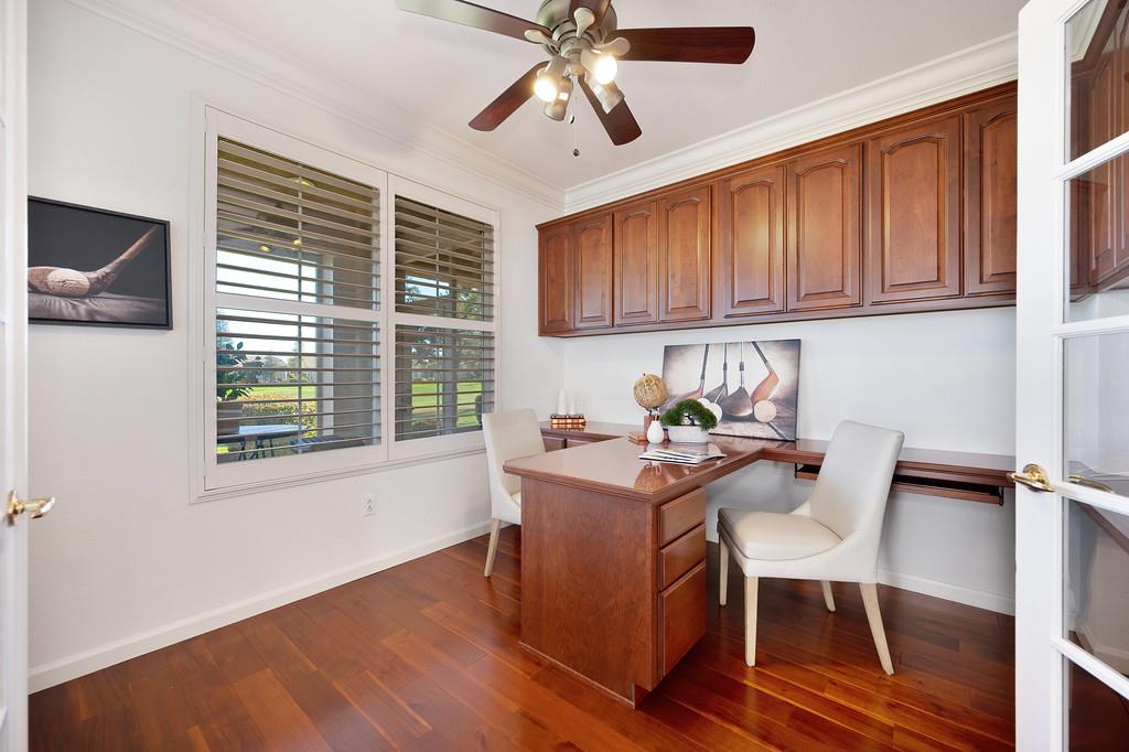 Enjoy serene golf course views from this beautifully maintained 3-bedroom, 2-bath home located on the 4th hole in the active adult community of Sun City Roseville. The spacious living room features custom built-ins, adding both style and functionality, while one of the bedrooms includes built-ins perfect for a home office. The well-appointed kitchen opens to a bright living area and leads to a charming screened-in porchideal for relaxing or entertaining with a backdrop of the fairway. The primary suite offers peaceful backyard views and a private en-suite bath. With access to premier community amenities including golf, a clubhouse, and a fitness center, this home delivers the perfect blend of comfort, convenience, and active living. It is the ever popular Baywood Model!