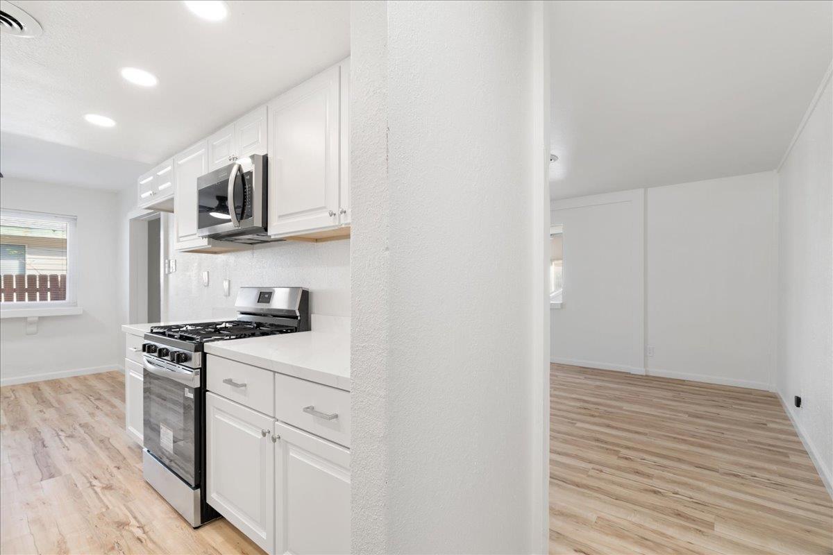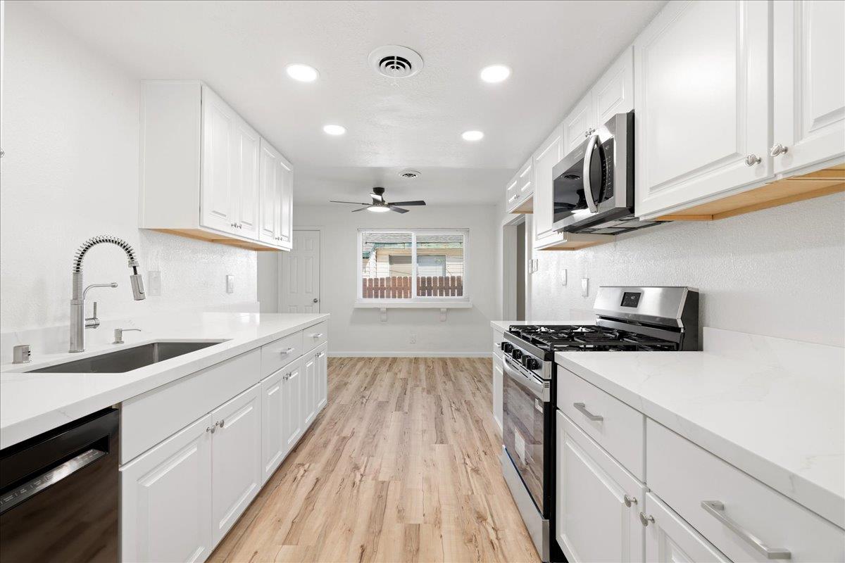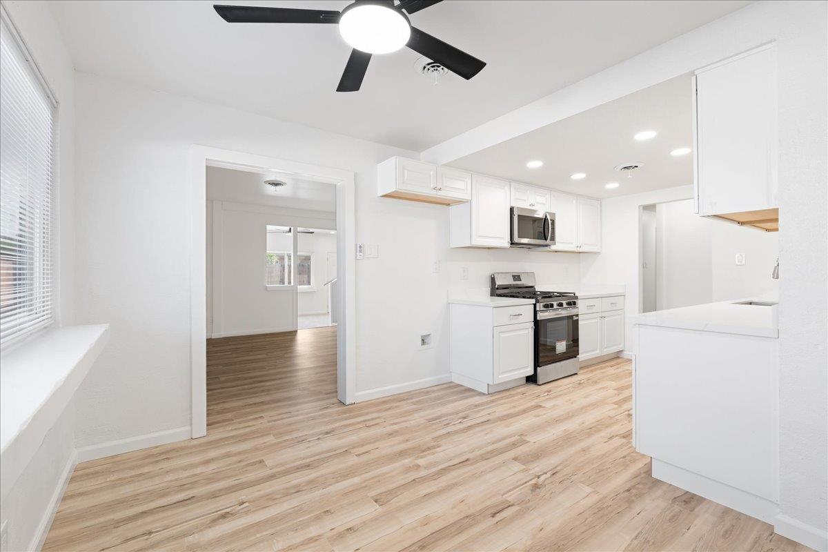 Thoughtfully designed for both comfort and versatility, this expansive 3-5 bedroom residence is perfectly suited for multi-generational living while offering the convenience of primarily single-story living. A spacious upstairs loftideal for a home office, media room, or play spaceadds flexibility without being included in the listed square footage. Recently refreshed with new interior paint, updated flooring, and modern fixtures, the home presents a clean, move-in-ready aesthetic. Major system upgradesincluding newer HVAC, plumbing, electrical, cabinetry, and flooringprovide both style and peace of mind. At the heart of the home, the beautifully updated kitchen features new appliances, including a gas range, and flows seamlessly into inviting living spaces designed for both everyday living and entertaining. The main living room is anchored by a cozy fireplace, creating a warm and welcoming ambiance. A true highlight of the property is the expansive rear living quarters, offering a private retreat complete with its own living area, full bathroom, and separate gated side entrance. While still connected to the main home through a wide, open passage, this space is ideal for extended family, guests, or anyone seeking additional privacy and independence. This is a rare opportunity to own a home that effortlessly combines functionality, flexibility, and modern comfort. Conveniently located near shopping and dining, this home blends thoughtful design, functionality, and location.