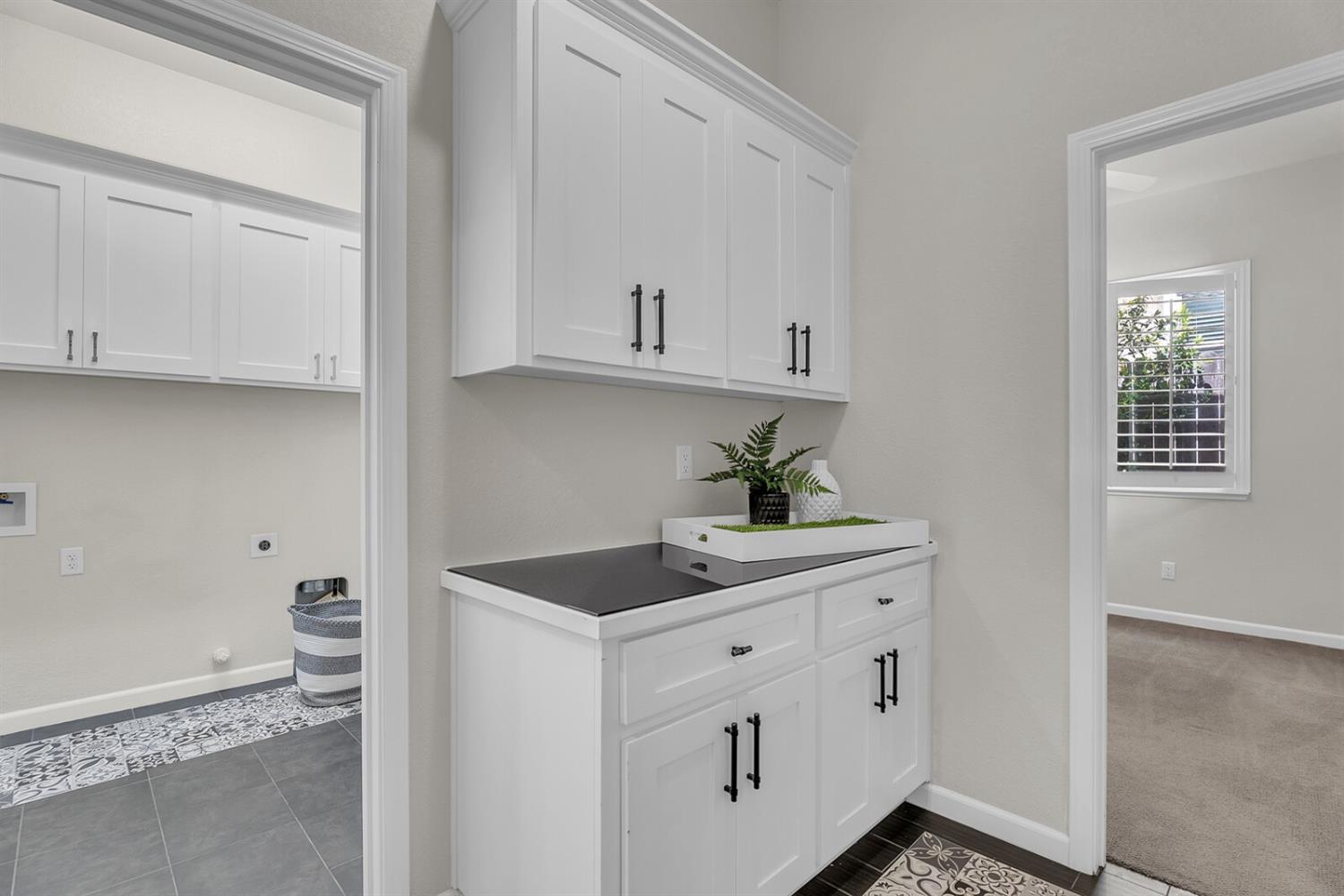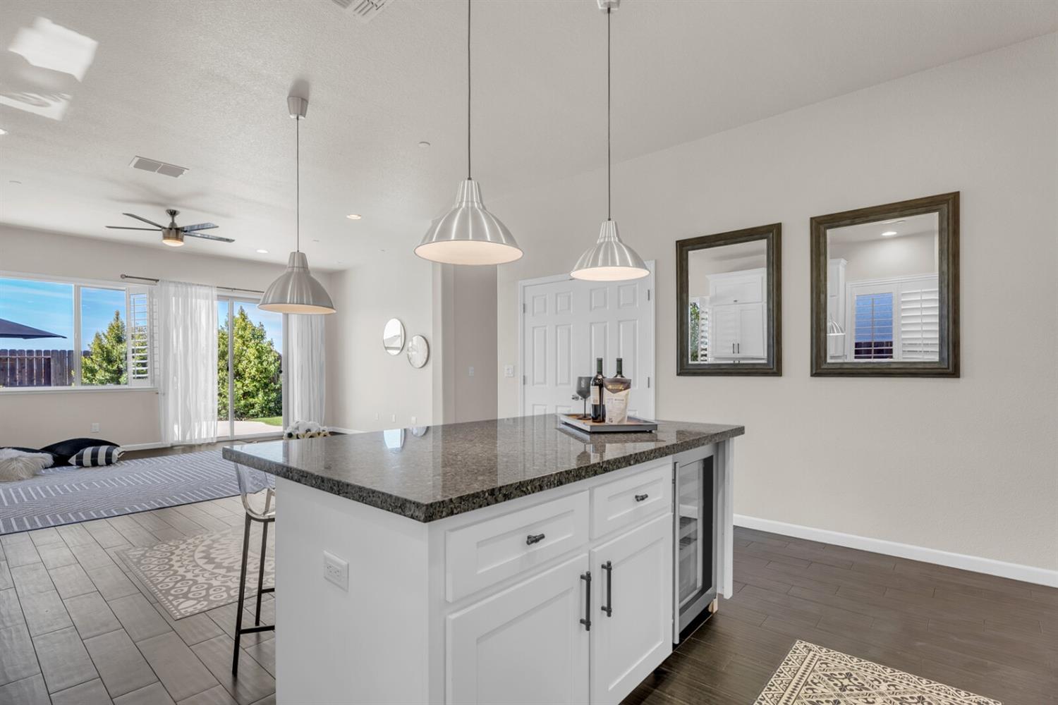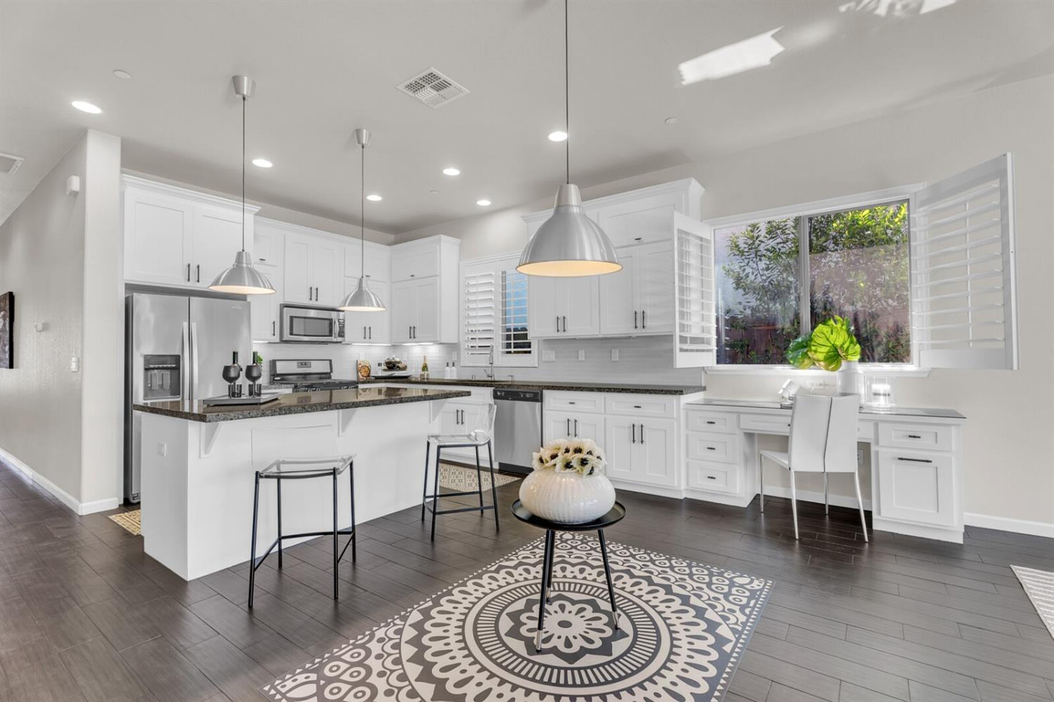 Welcome to your dream home in the prestigious Whitney Ranch community, where luxury living meets convenience. This meticulously designed single story property is situated just moments away from the Clubhouse and pool, offering resort-style amenities throughout. As you step in, you're greeted by a generous entryway, setting the tone for the spaciousness that lies within. The heart of the home boasts a modern aesthetic, with tall white kitchen cabinets adorned with sleek black handles along with a wine fridge for entertaining guests. The seamless flow of the open concept kitchen and living area creates a warm and inviting atmosphere. With four bedrooms and three bathrooms, including a junior suite, there's ample space to accommodate guests or family members with ease. Retreat to the primary suite, strategically positioned at the rear of the home for optimal tranquility and privacy. Here, you can unwind and recharge in your own sanctuary away from the hustle and bustle of daily life. Outside, discover a low-maintenance backyard, perfect for enjoying the California sunshine and alfresco dining. Experience the epitome of upscale living in this thoughtfully crafted home, where every detail has been carefully considered to enhance your lifestyle and elevate your everyday experience.