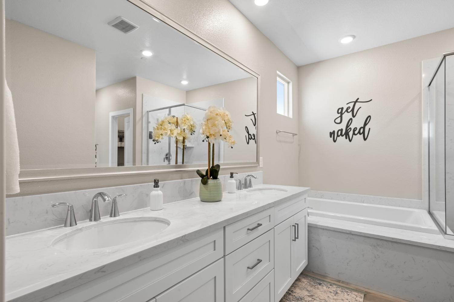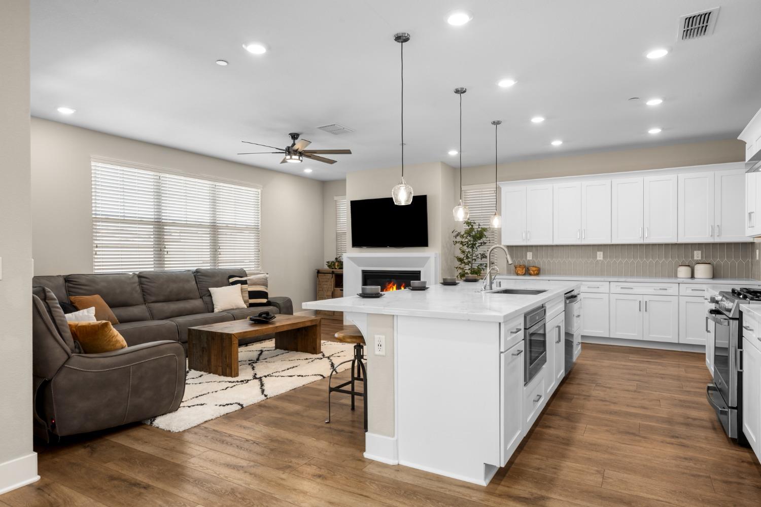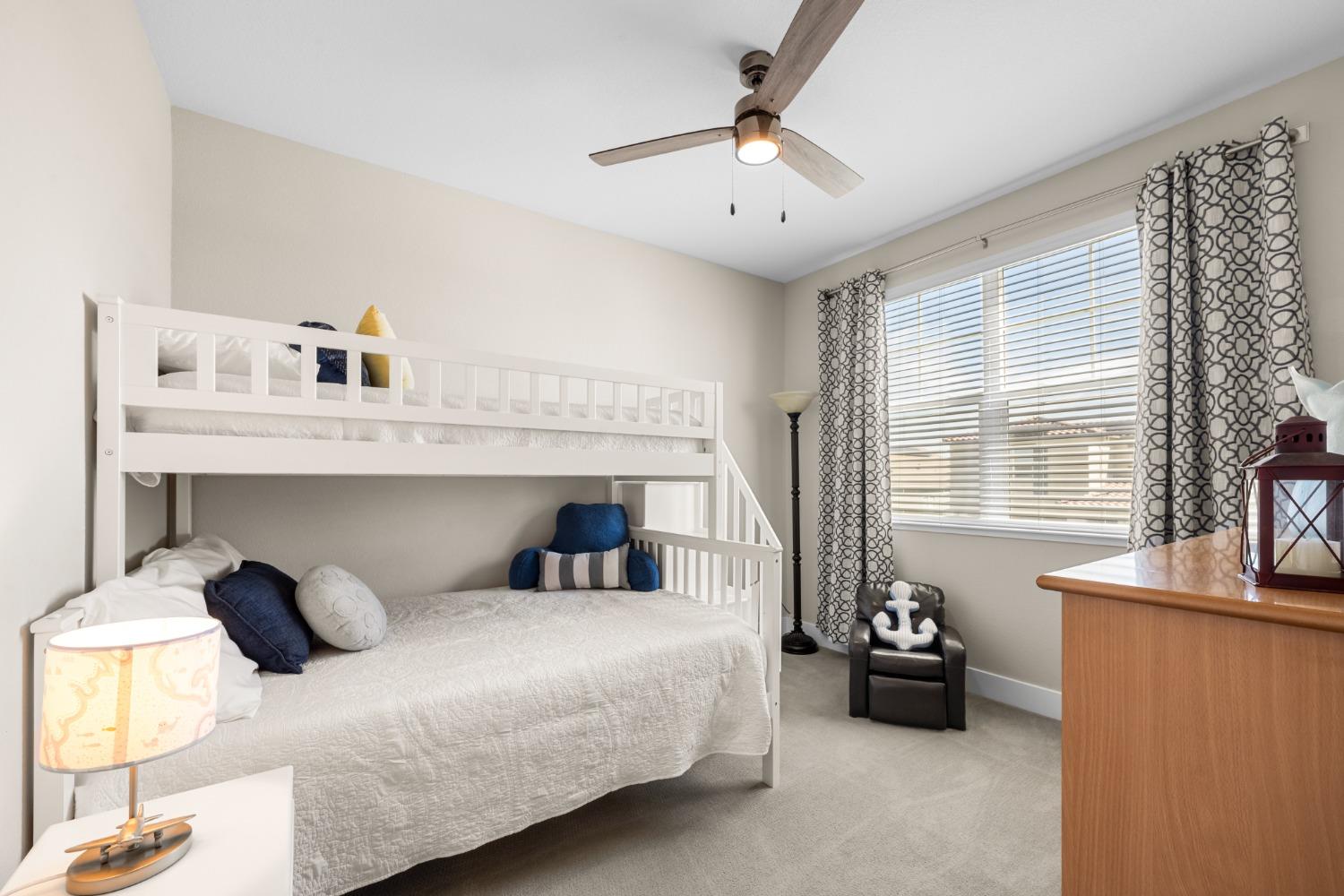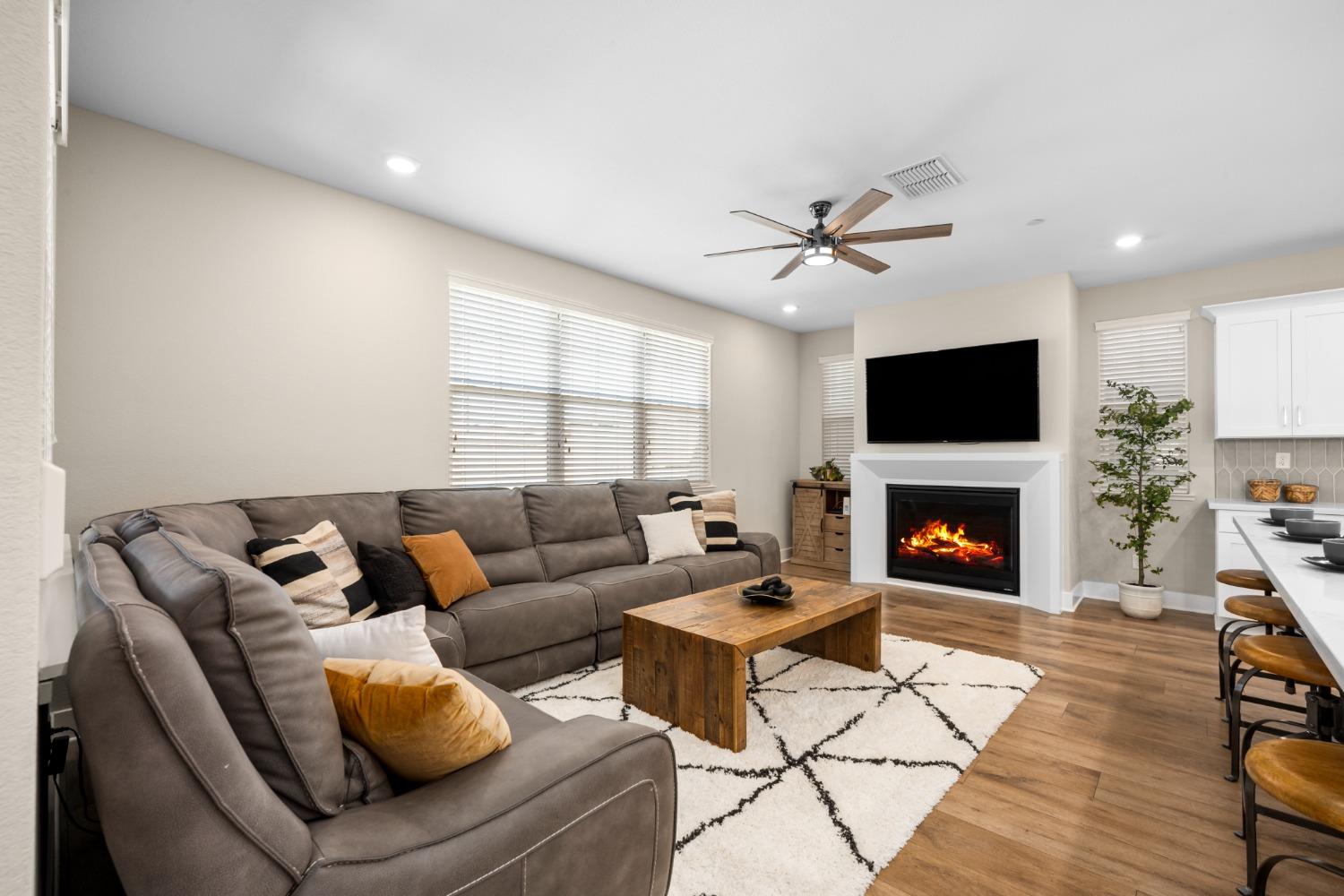 Welcome to this immaculate, craftsman home, in the wonderful community of Whitney Ranch! Light and bright, this home has a space for everything you need! The spacious open concept floor plan has casual and formal dining spaces for easy entertaining. The kitchen is equipped with stainless steel appliances, a large island, gas stove, and an abundance of cabinet space. On the opposite side of the home is a private bedroom and full bathroom, allowing for multi-gen living, guest quarters, or an office. Upstairs, you will find an expansive primary suite with a walk in closet, double sink vanity, a large soaking tub, and several windows to let it natural light. Two additional bedrooms, a large hall bathroom, and the laundry room are also conveniently located upstairs. The backyard is perfectly designed to maximize on fun and minimize the maintenance! The covered patio allows you to enjoy the evening breeze while the sun sets and the turf offers plenty of space for backyard games! Worry less about your utility bills with the OWNED SOLAR and Pre-plumbed for Hot Tub! Set out for a stroll or take a ride on the biking/walking trails through Whitney Ranch and stop at the Ranch House for a swim or to enjoy one of the many community events that make this such a great place to call home.