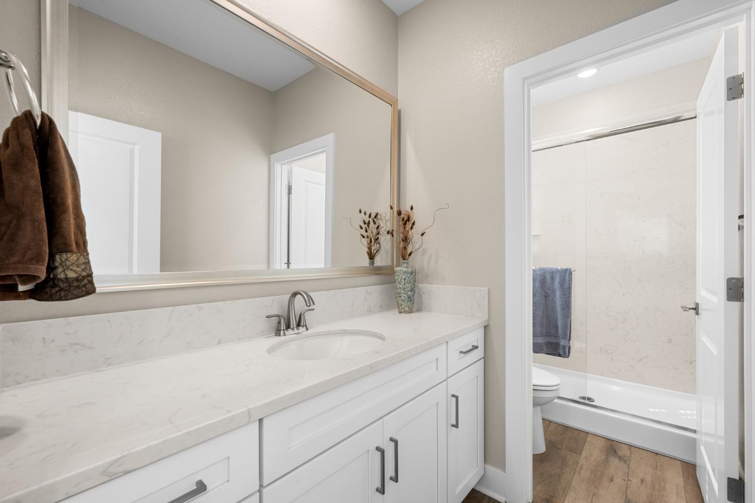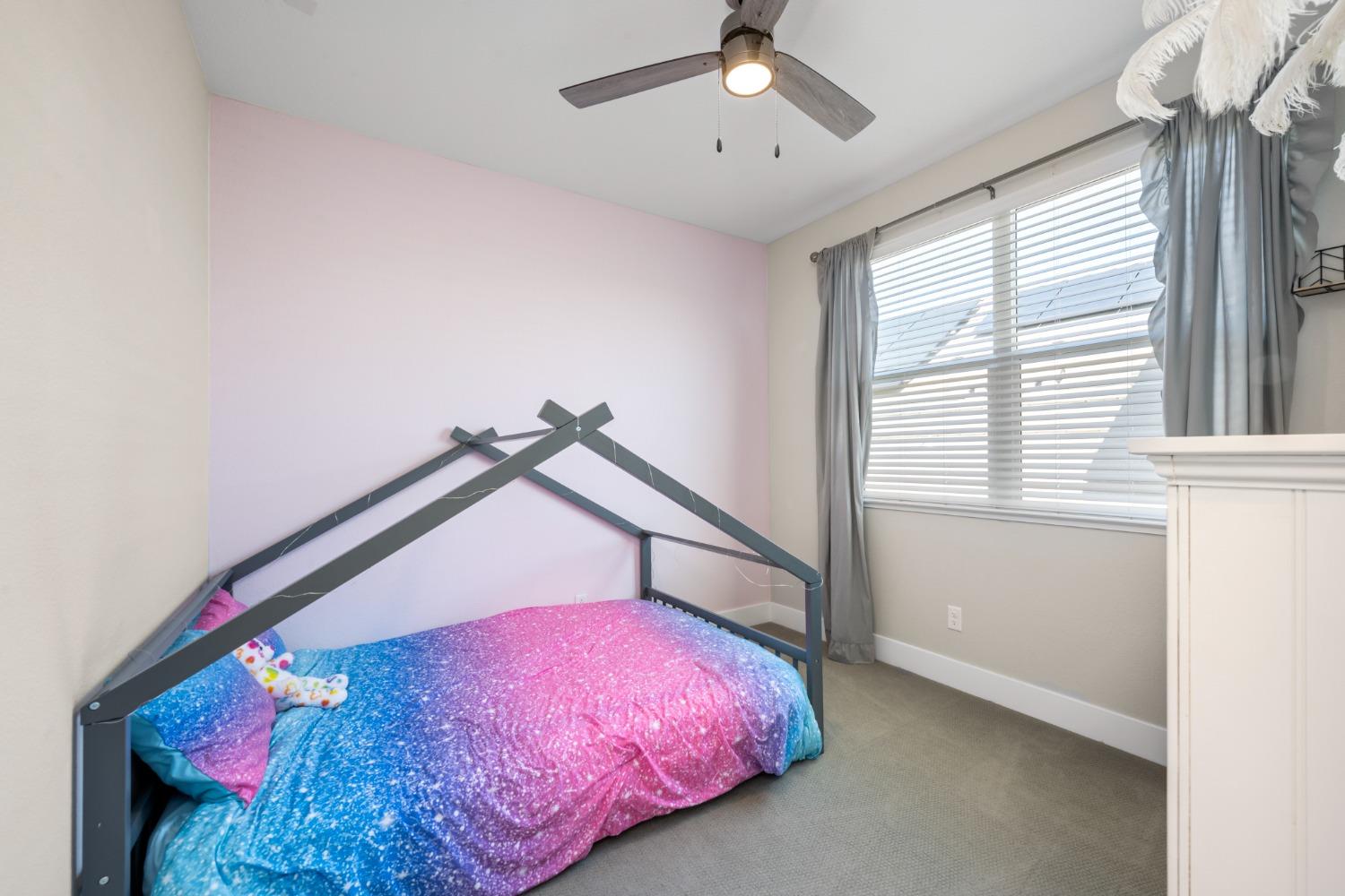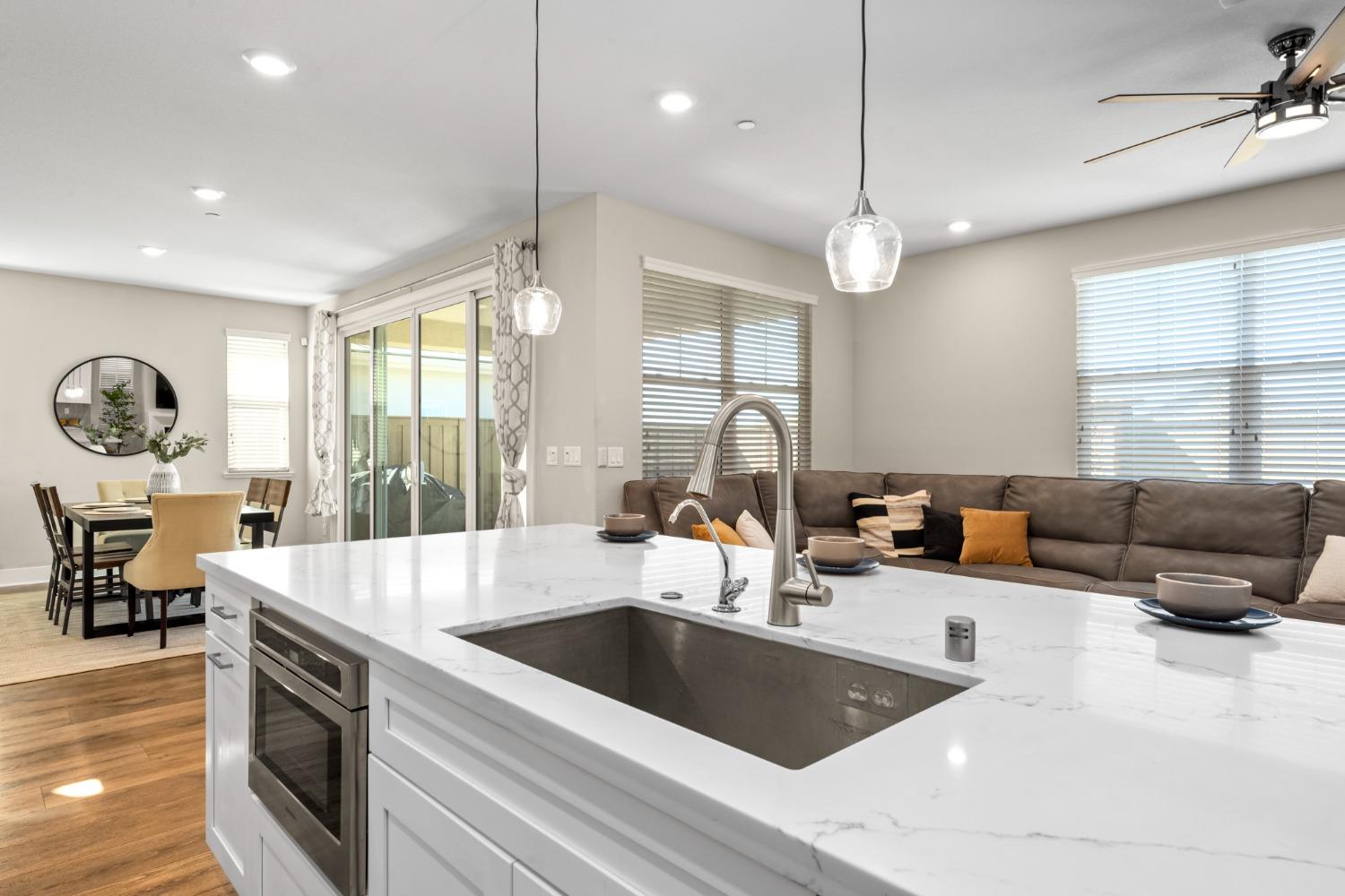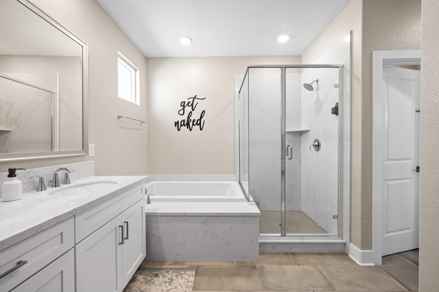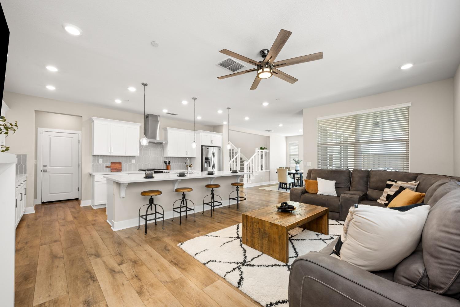 Welcome to this immaculate, craftsman home, in the wonderful community of Whitney Ranch! Light and bright, this home has a space for everything you need! The spacious open concept floor plan has casual and formal dining spaces for easy entertaining. The kitchen is equipped with stainless steel appliances, a large island, gas stove, and an abundance of cabinet space. On the opposite side of the home is a private bedroom and full bathroom, allowing for multi-gen living, guest quarters, or an office. Upstairs, you will find an expansive primary suite with a walk in closet, double sink vanity, a large soaking tub, and several windows to let it natural light. Two additional bedrooms, a large hall bathroom, and the laundry room are also conveniently located upstairs. The backyard is perfectly designed to maximize on fun and minimize the maintenance! The covered patio allows you to enjoy the evening breeze while the sun sets and the turf offers plenty of space for backyard games! Worry less about your utility bills with the OWNED SOLAR and Pre-plumbed for Hot Tub! Set out for a stroll or take a ride on the biking/walking trails through Whitney Ranch and stop at the Ranch House for a swim or to enjoy one of the many community events that make this such a great place to call home.