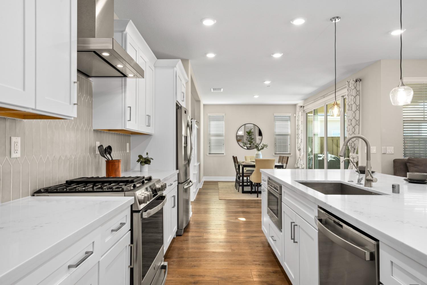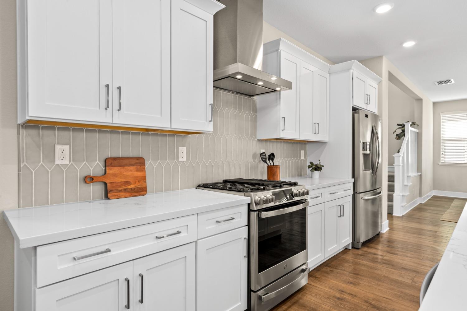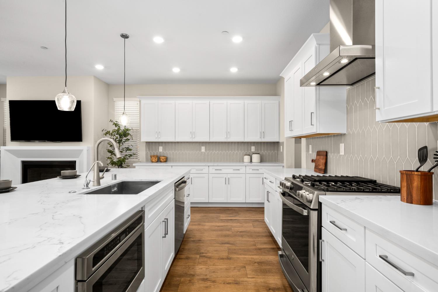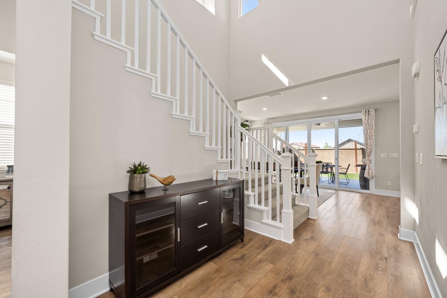 Welcome to this immaculate, craftsman home, in the wonderful community of Whitney Ranch! Light and bright, this home has a space for everything you need! The spacious open concept floor plan has casual and formal dining spaces for easy entertaining. The kitchen is equipped with stainless steel appliances, a large island, gas stove, and an abundance of cabinet space. On the opposite side of the home is a private bedroom and full bathroom, allowing for multi-gen living, guest quarters, or an office. Upstairs, you will find an expansive primary suite with a walk in closet, double sink vanity, a large soaking tub, and several windows to let it natural light. Two additional bedrooms, a large hall bathroom, and the laundry room are also conveniently located upstairs. The backyard is perfectly designed to maximize on fun and minimize the maintenance! The covered patio allows you to enjoy the evening breeze while the sun sets and the turf offers plenty of space for backyard games! Worry less about your utility bills with the OWNED SOLAR and Pre-plumbed for Hot Tub! Set out for a stroll or take a ride on the biking/walking trails through Whitney Ranch and stop at the Ranch House for a swim or to enjoy one of the many community events that make this such a great place to call home.