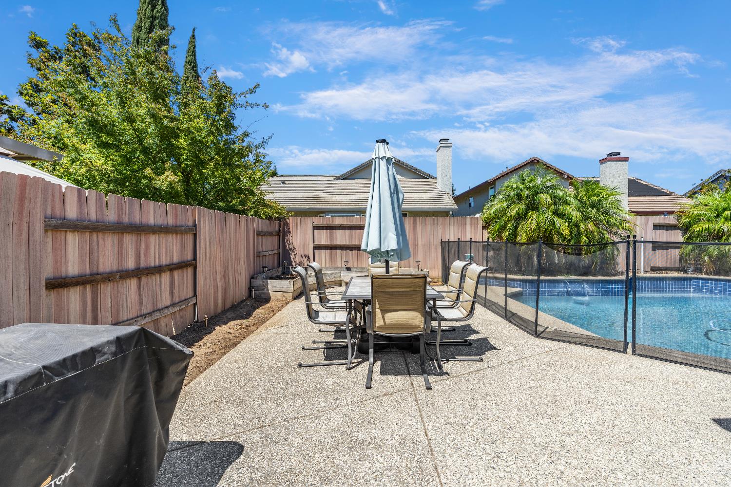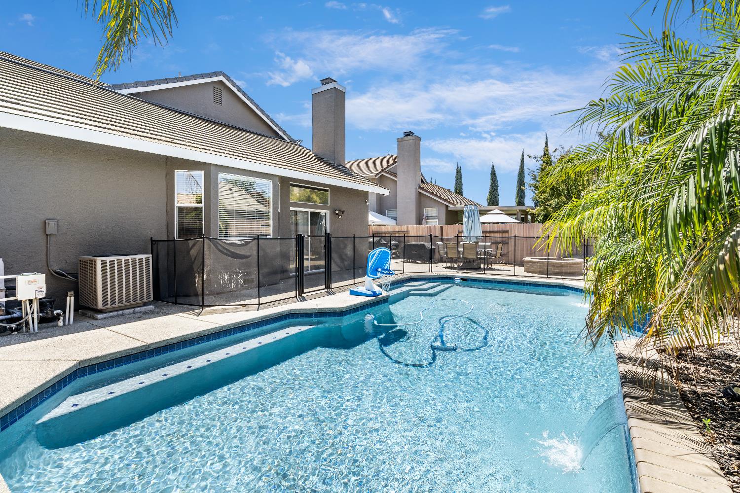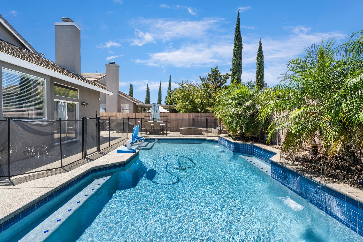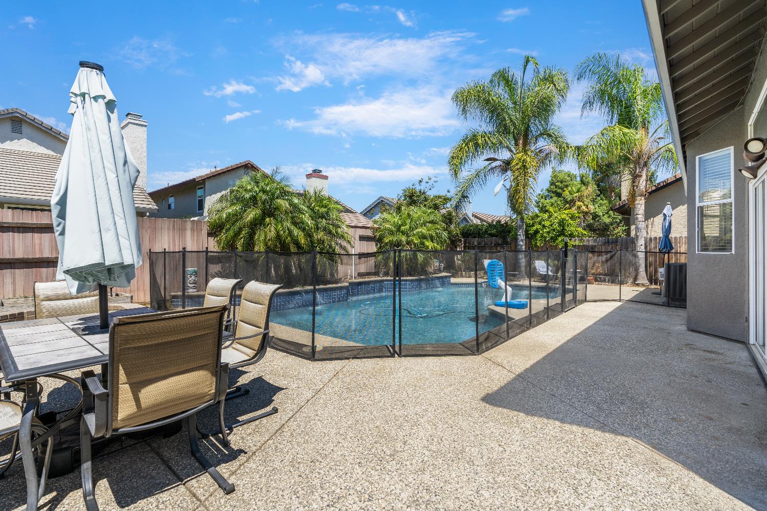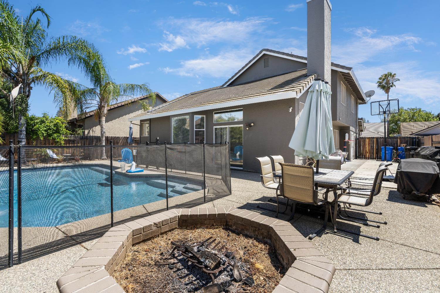 This great home checks all of the boxes! Bedroom and full bathroom on lower level. Three more bedrooms and two bathrooms upstairs. Backyard with pool, patio, fire pit, and flex space for your favorite hobbies. 3 car garage with a driveway that can accommodate 4 cars. Wide gate to the backyard to accommodate RVs. Laundry room inside, granite counter tops in the kitchen, pantry closet, and flexible spaces to fit your needs. Close to walking/biking trials that lead to community park with playground, garden, and sport courts.
