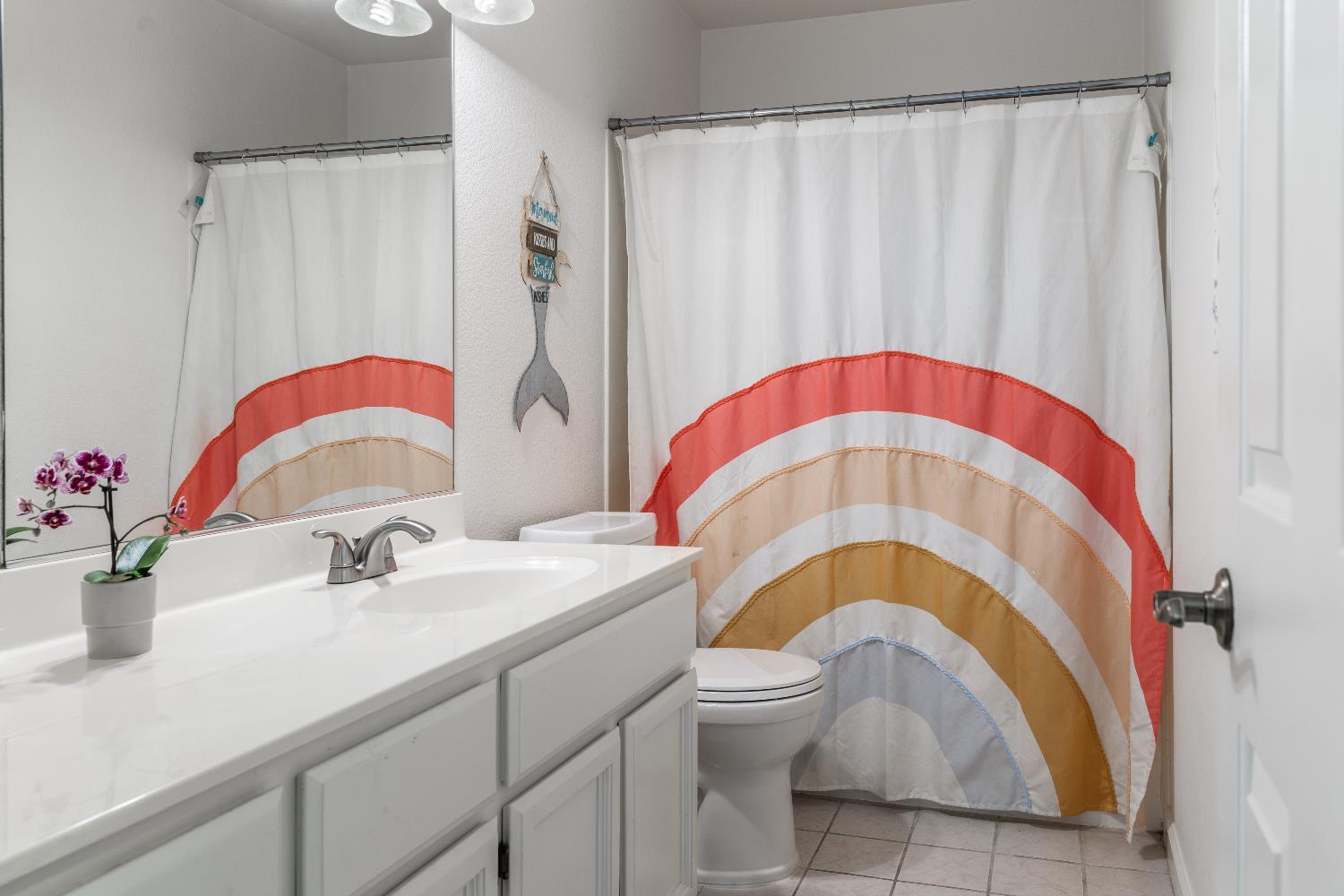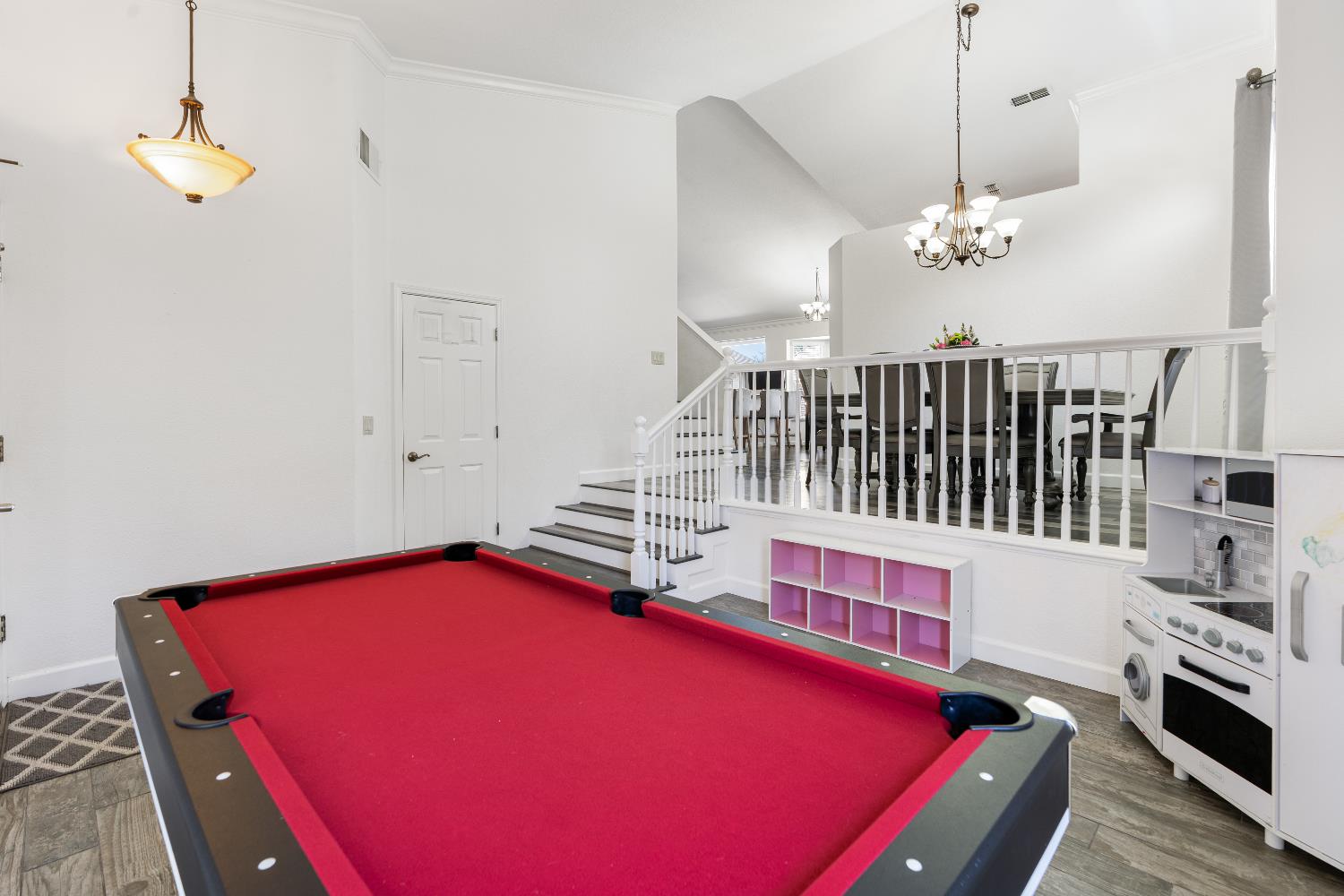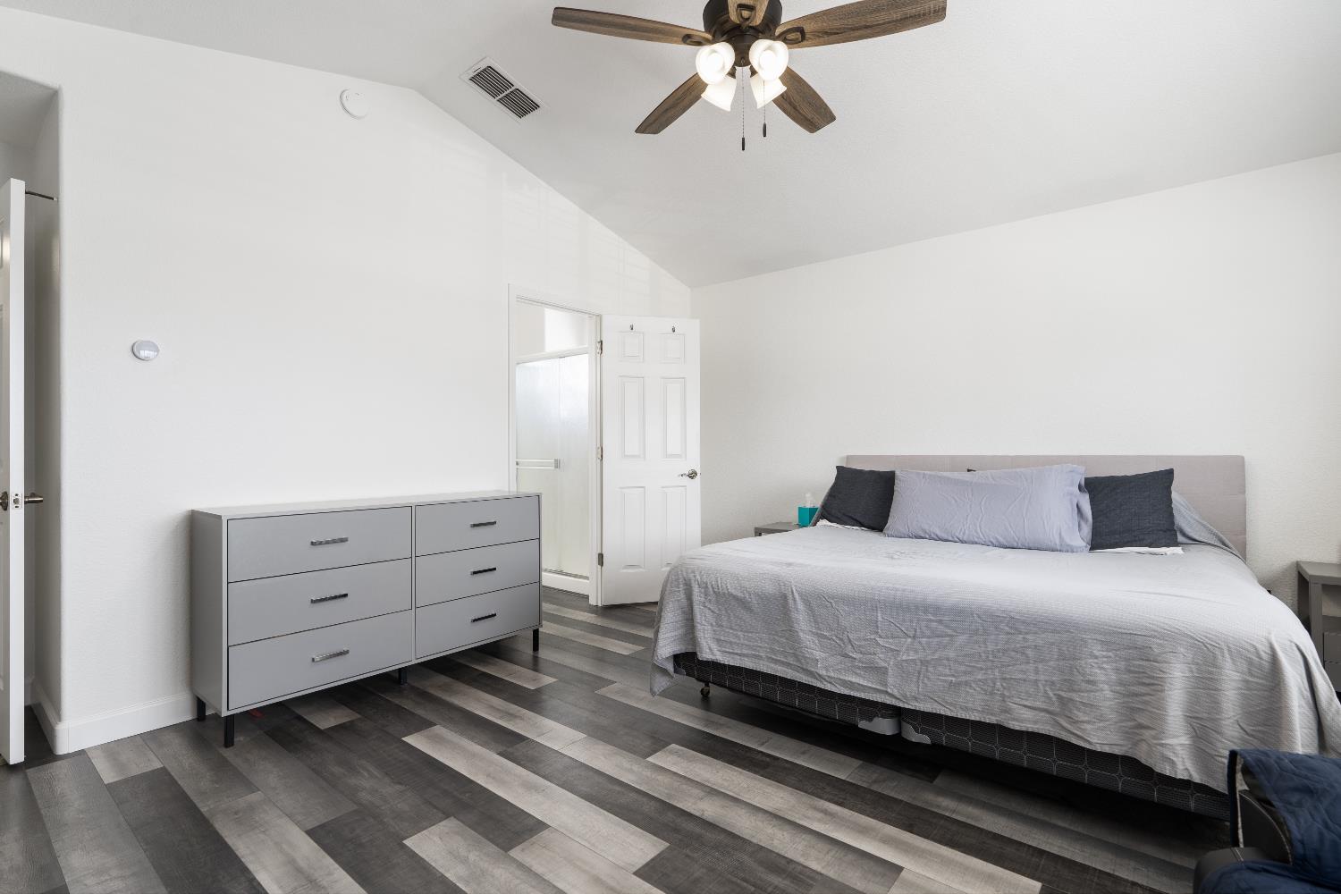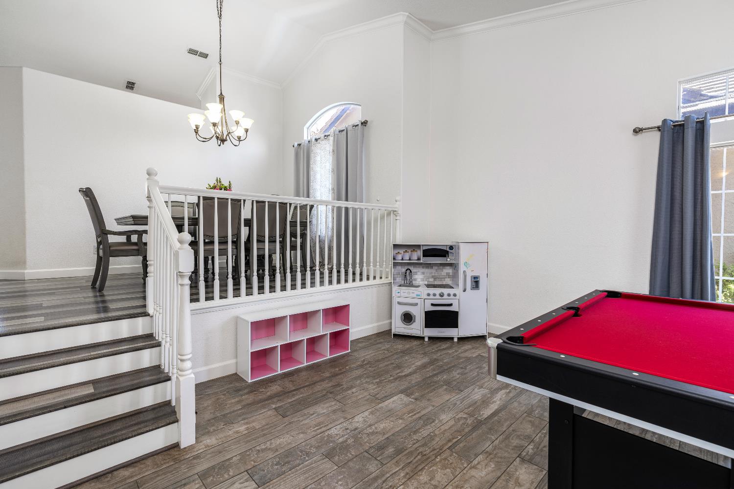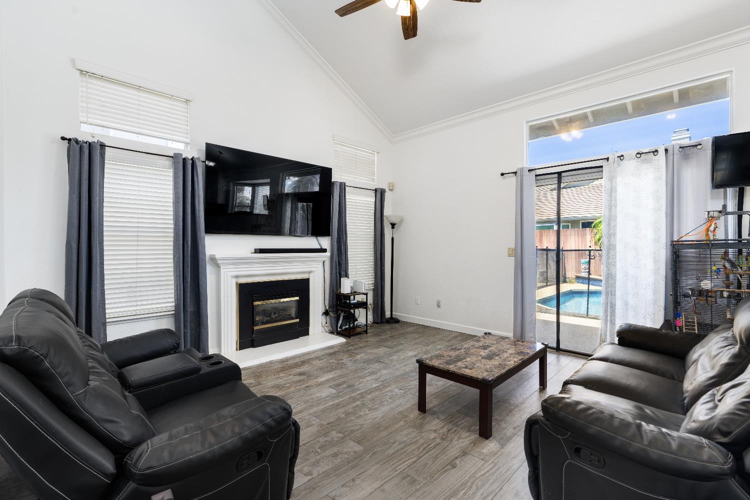 This great home checks all of the boxes! Bedroom and full bathroom on lower level. Three more bedrooms and two bathrooms upstairs. Backyard with pool, patio, fire pit, and flex space for your favorite hobbies. 3 car garage with a driveway that can accommodate 4 cars. Wide gate to the backyard to accommodate RVs. Laundry room inside, granite counter tops in the kitchen, pantry closet, and flexible spaces to fit your needs. Close to walking/biking trials that lead to community park with playground, garden, and sport courts.