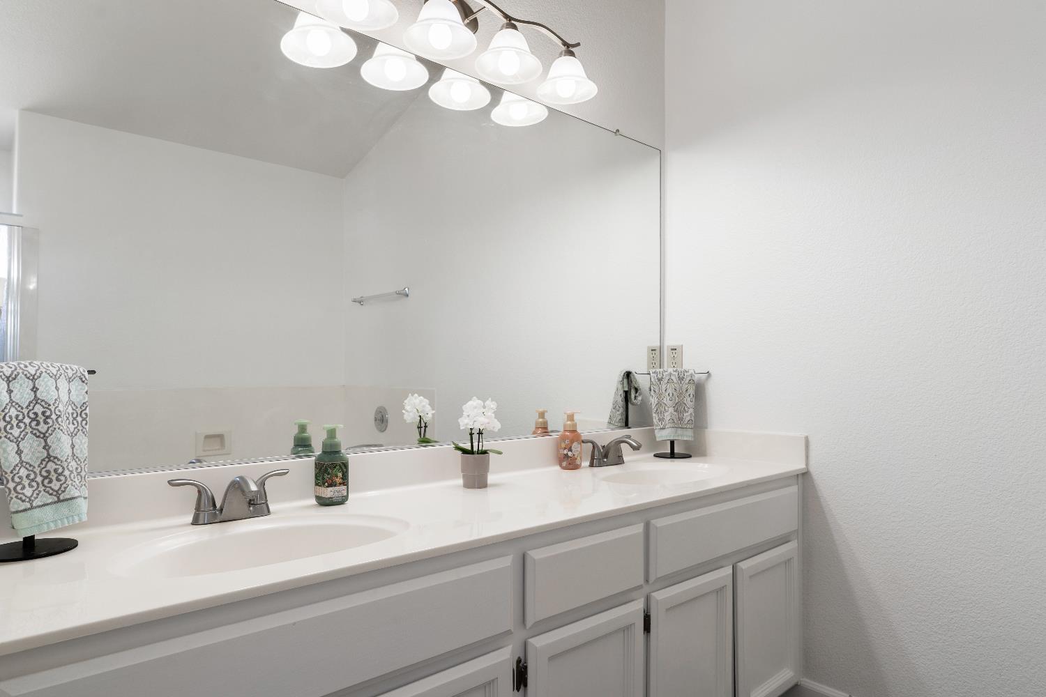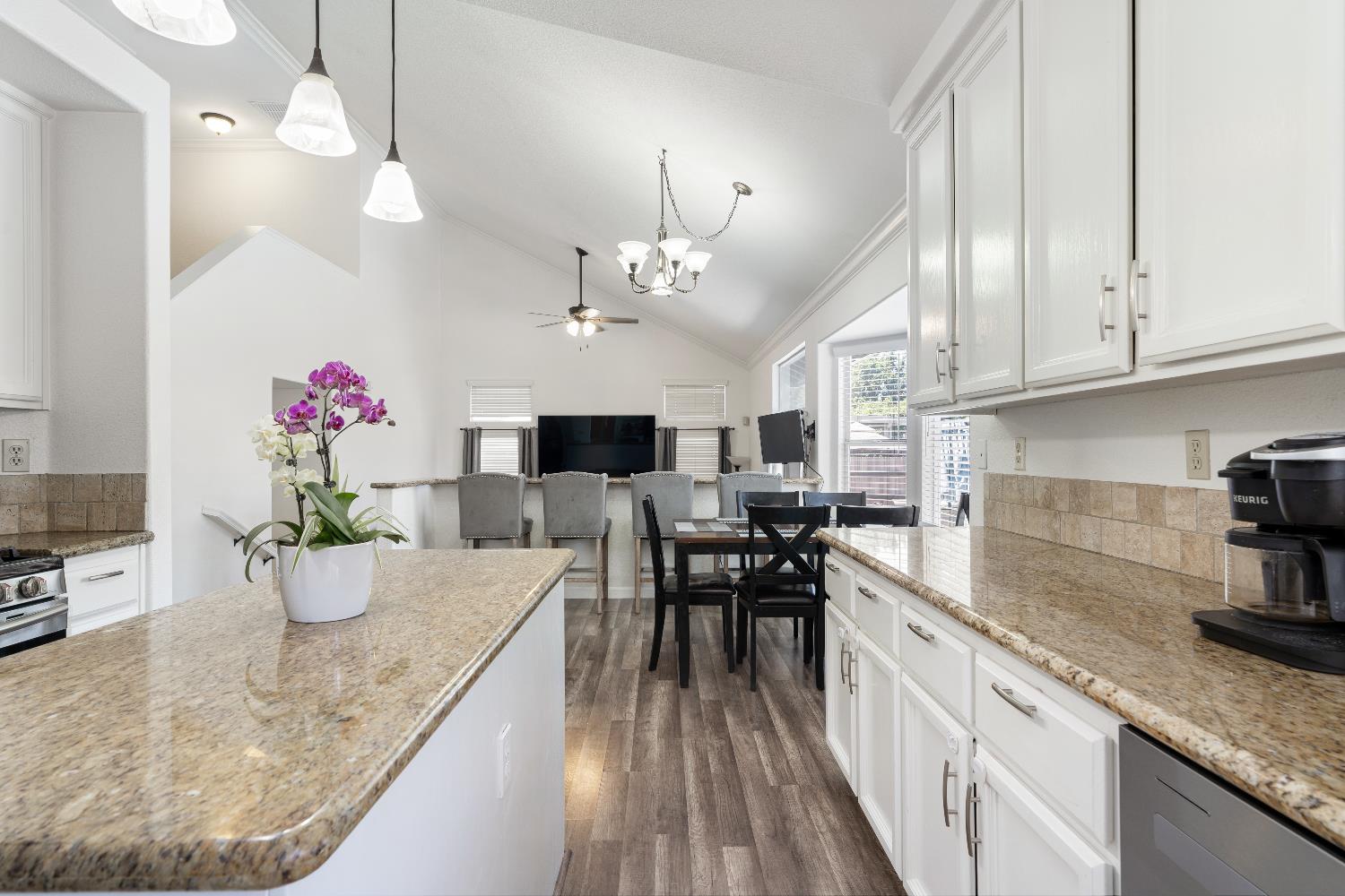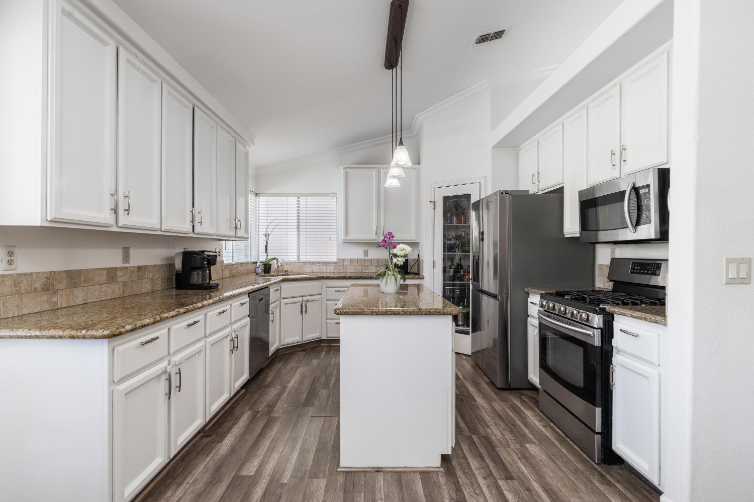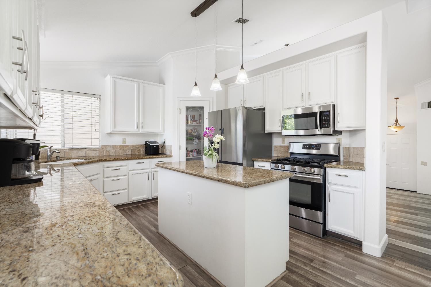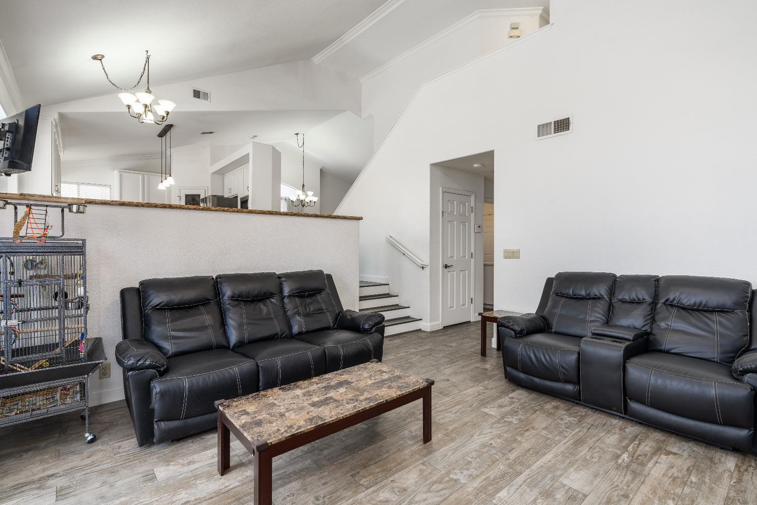 This great home checks all of the boxes! Bedroom and full bathroom on lower level. Three more bedrooms and two bathrooms upstairs. Backyard with pool, patio, fire pit, and flex space for your favorite hobbies. 3 car garage with a driveway that can accommodate 4 cars. Wide gate to the backyard to accommodate RVs. Laundry room inside, granite counter tops in the kitchen, pantry closet, and flexible spaces to fit your needs. Close to walking/biking trials that lead to community park with playground, garden, and sport courts.