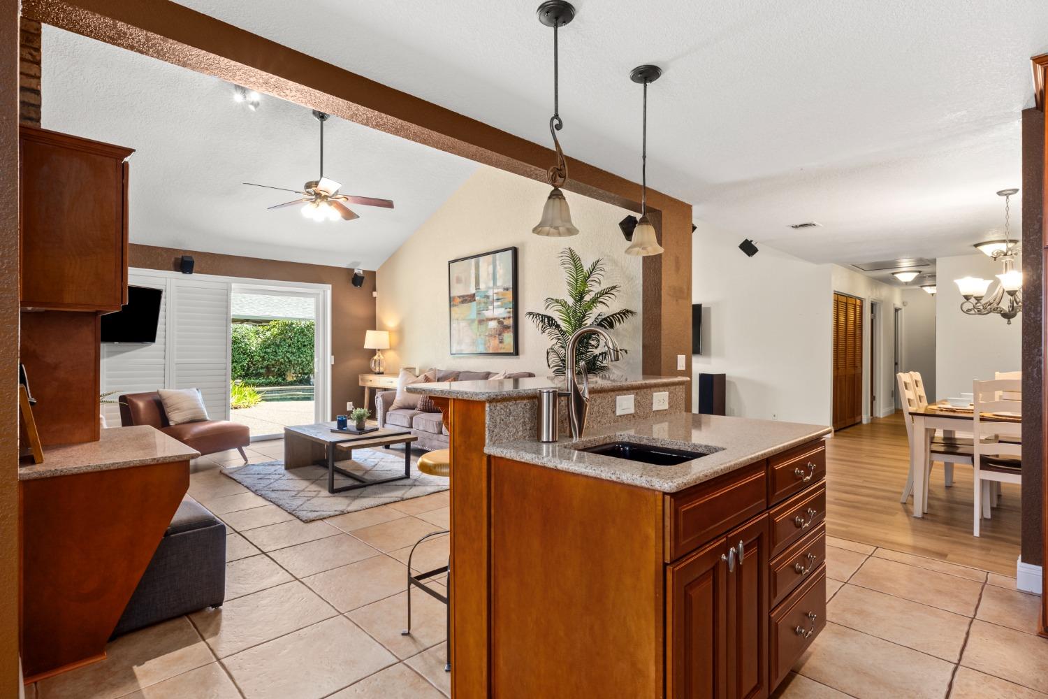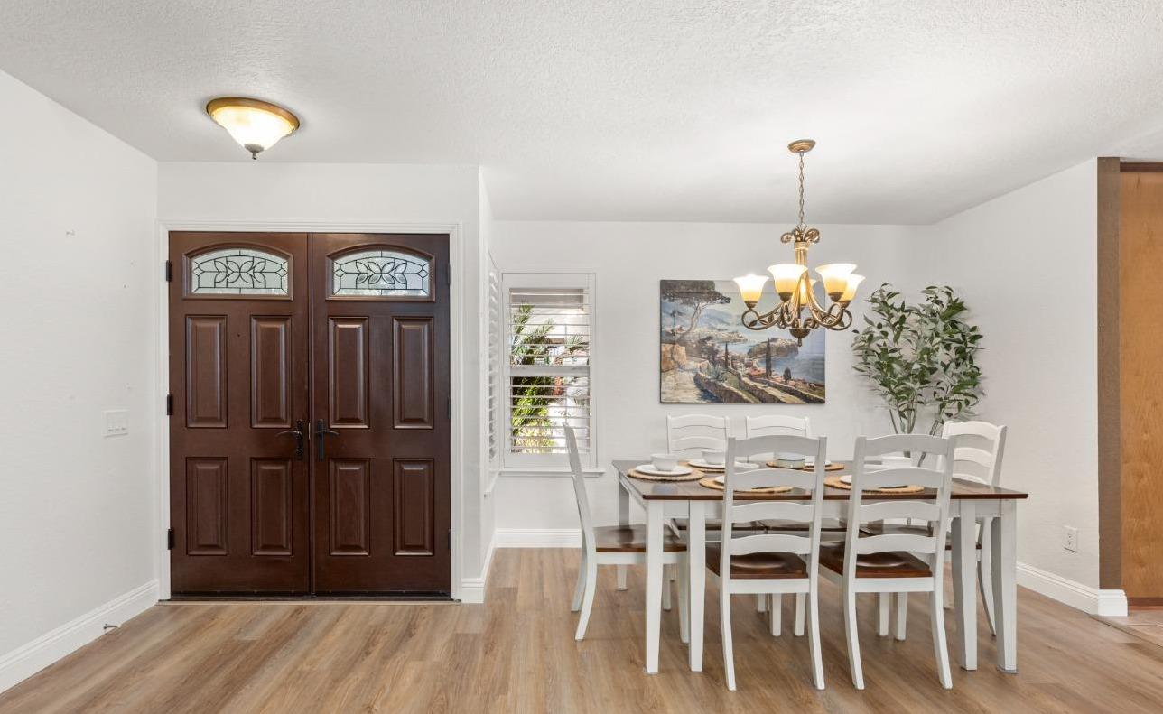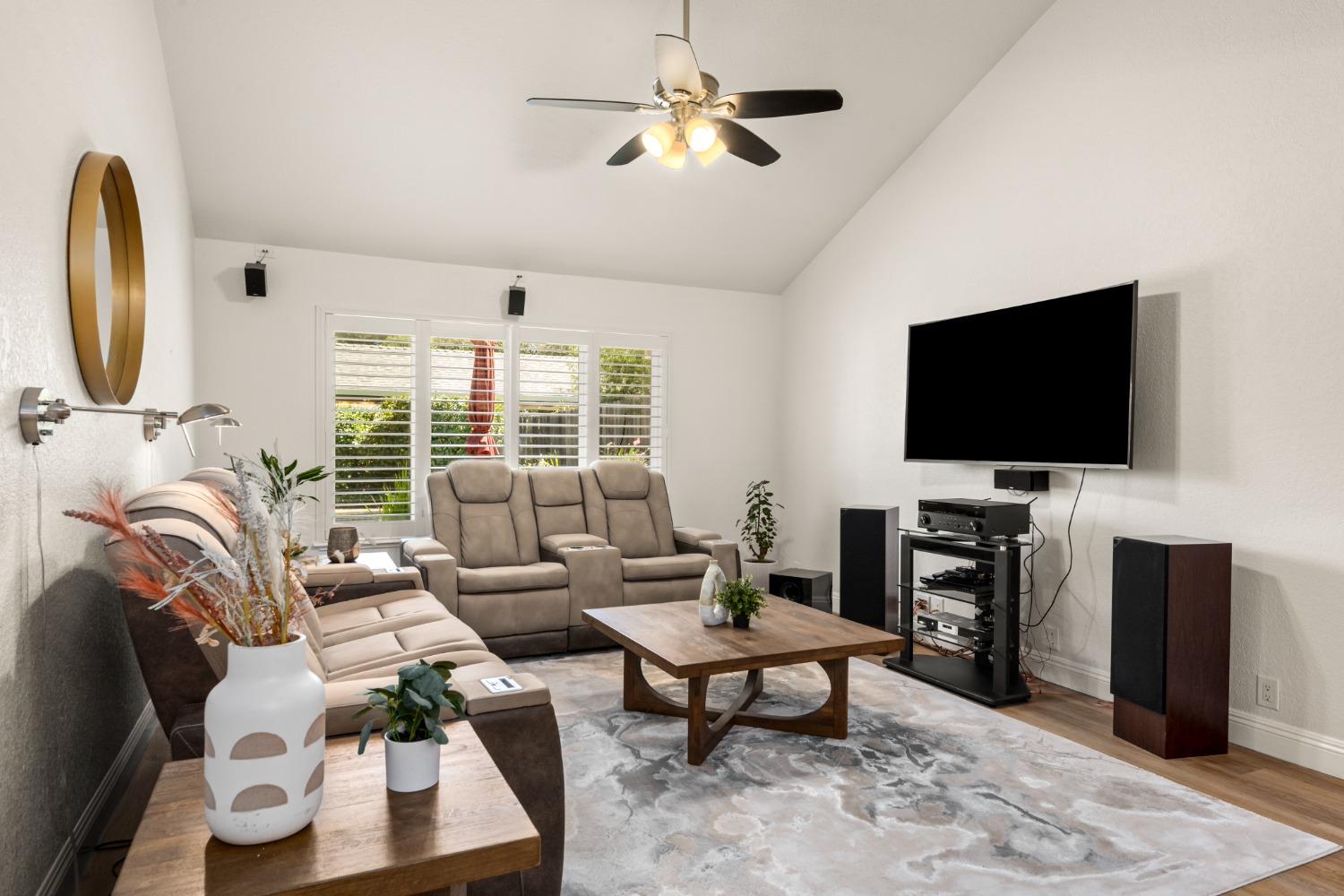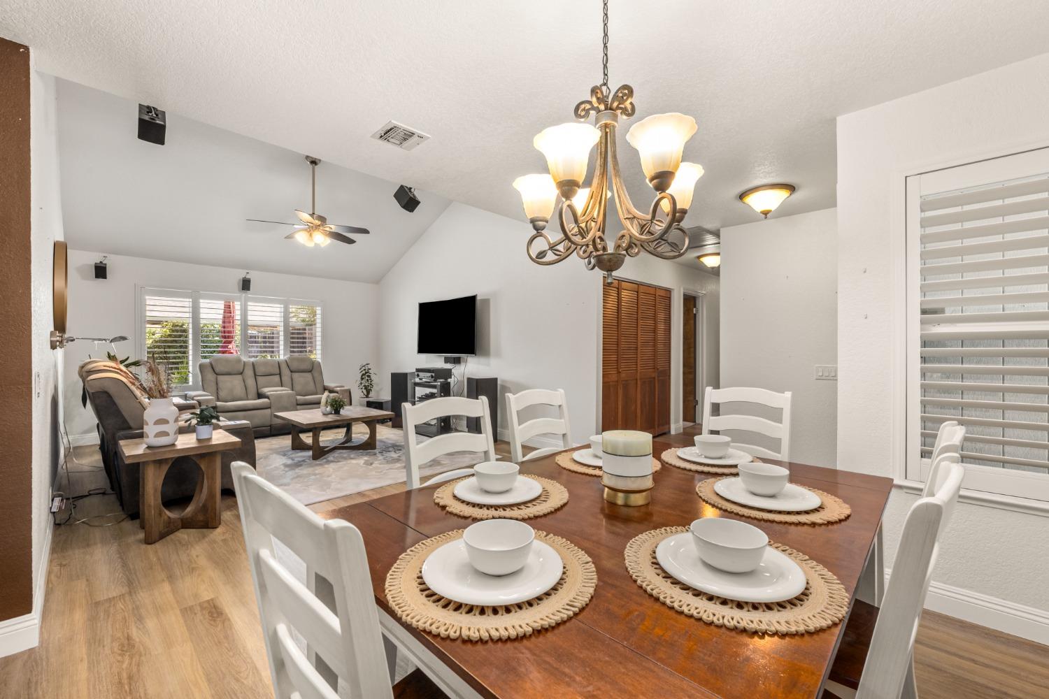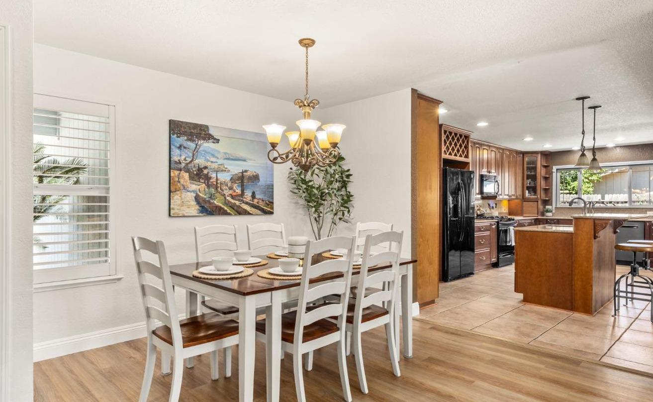 Welcome to 8690 Gaines Avenue, located in the esteemed Almond Orchard Estates neighborhood of Orangevale. This elegant residence offers a smart and sophisticated living experience, all nestled on a generous lot, with mature landscaping. Upon entering, you'll be greeted by an inviting interior that seamlessly blends style and functionality. The upgraded kitchen is a true culinary haven, boasting modern amenities and ample storage. The prep sink in the kitchen island is perfect for creating delicious meals to be enjoyed casually at the counter or in the dining area. Natural light dances through the windows adorned with shutters, creating a warm and welcoming atmosphere throughout the home. Step outside to your private oasis, where you'll find a solar-heated pool and spa, providing the perfect setting for relaxation and entertainment. The expansive backyard features two decks and varying levels of shade for your comfort. RV parking offers convenience and versatility for your lifestyle needs. Don't miss the opportunity to make 8690 Gaines Avenue your new home, where elegance, functionality, and fun come together to create an exceptional living experience. Schedule your private tour today and discover the endless possibilities that await in this remarkable Orangevale property.