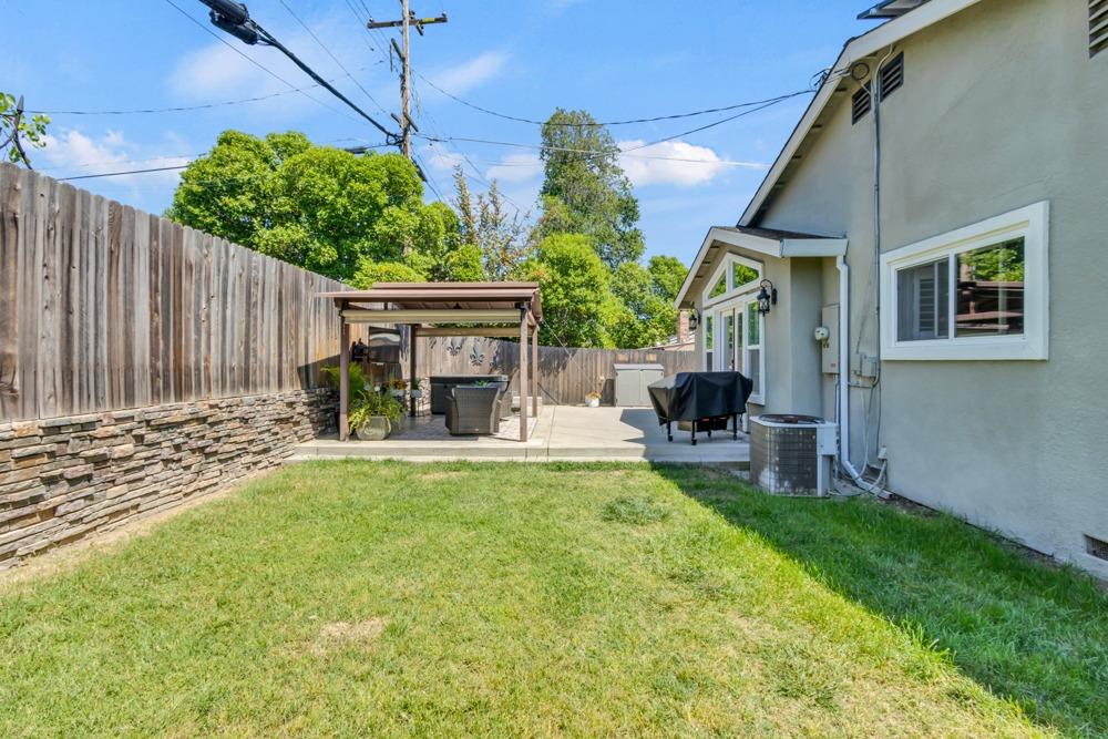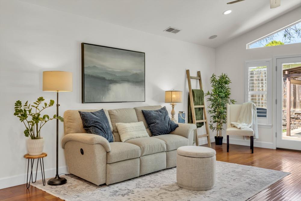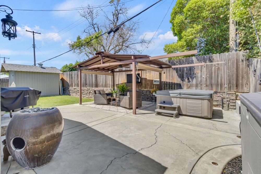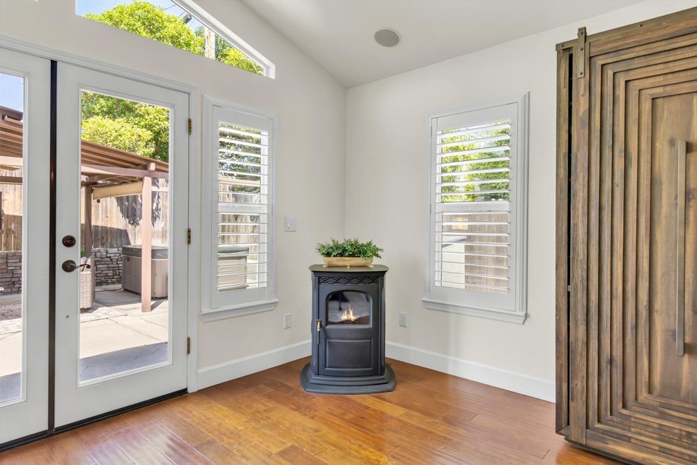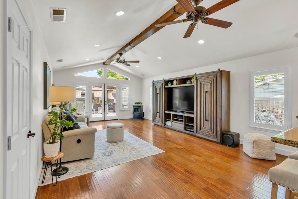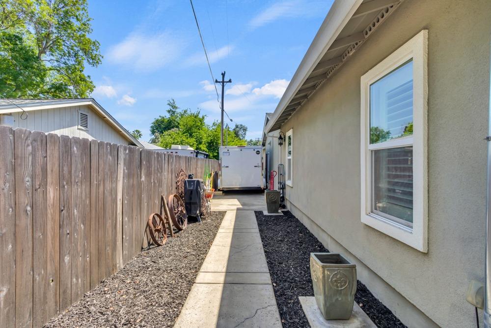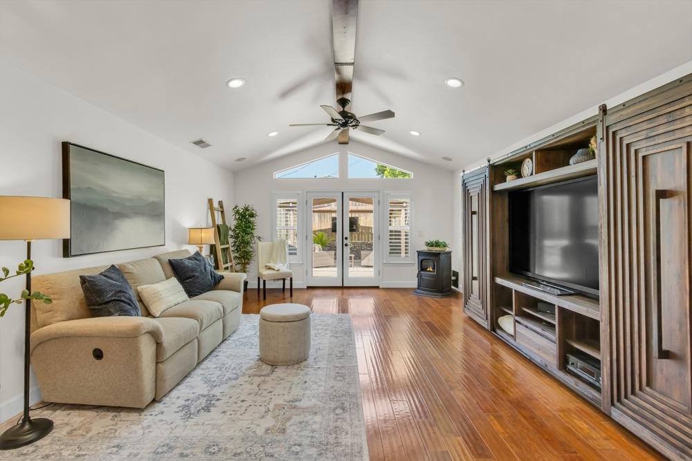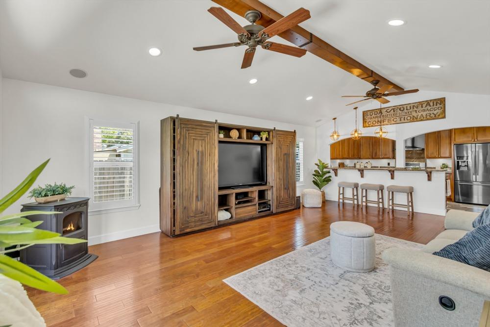 Welcome to this meticulously updated single-story home with *owned solar and *dual RV parking, nestled on a quiet street in the heart of Orangevale! Offering *1,712 square feet of well-designed living space, this 3-bedroom, 2-bathroom home blends comfort and functionality and is ideal for everyday living or entertaining. Step into a bright, airy living area featuring a cozy fireplace and open layout that flows into the dining area and kitchen. The kitchen with a *chef's gas range provides ample cabinet storage, practical counter space, and a seamless connection to the dining area, perfect for gatherings or casual meals. The great room with exposed beams, real hardwood floors, and a pellet stove is ideal for gathering. The spacious primary suite includes an en-suite bathroom and ample closet space. Two additional bedrooms offer flexibility for guests or a home office. Dual-pane windows and a tankless water heater provide extra energy efficiency! Enjoy the outdoors in a private backyard with a hot tub, shade structure, dining, or relaxing space. An 8x12 storage shed adds functionality and extra space. Located near parks, schools, shopping, and dining, with easy access to major commuter routes. This Orangevale gem is move-in ready!