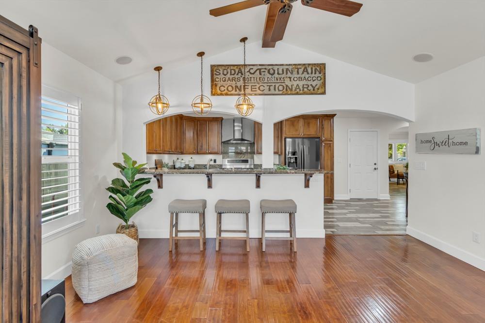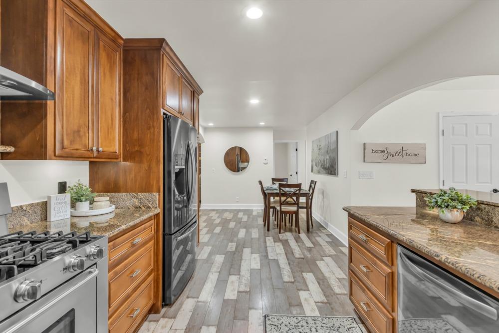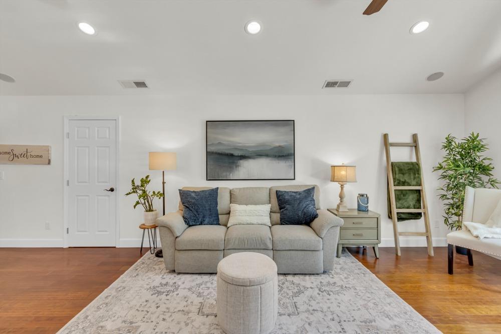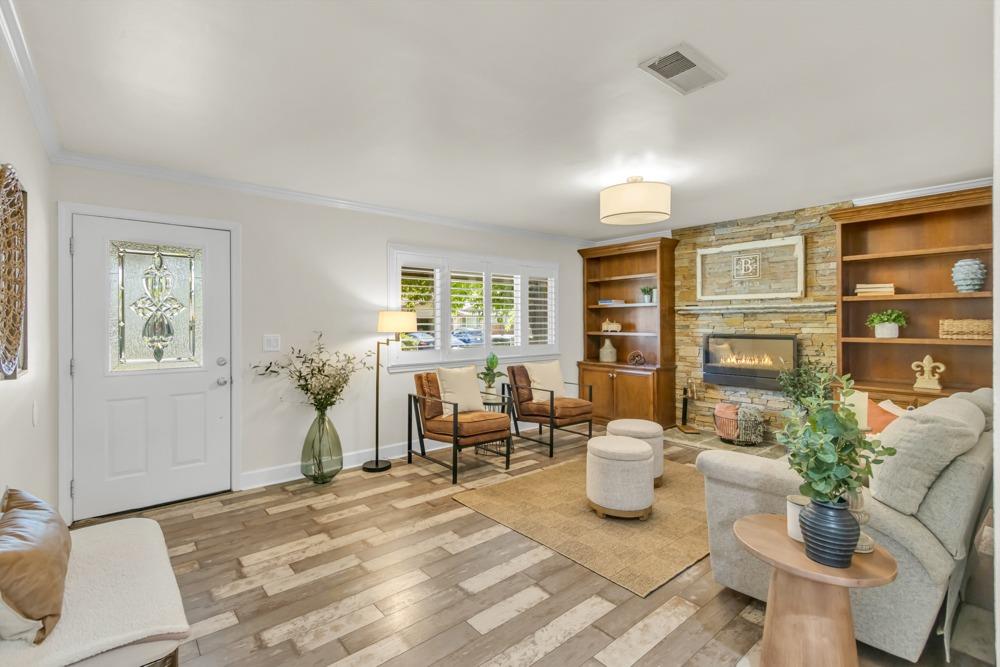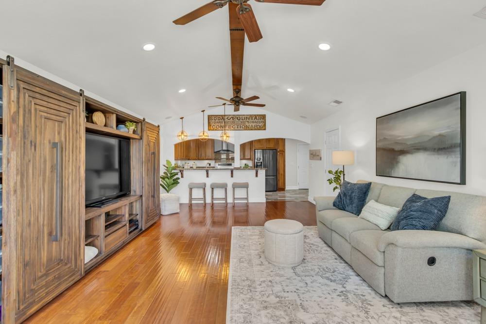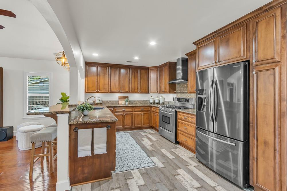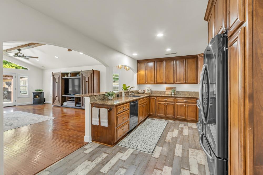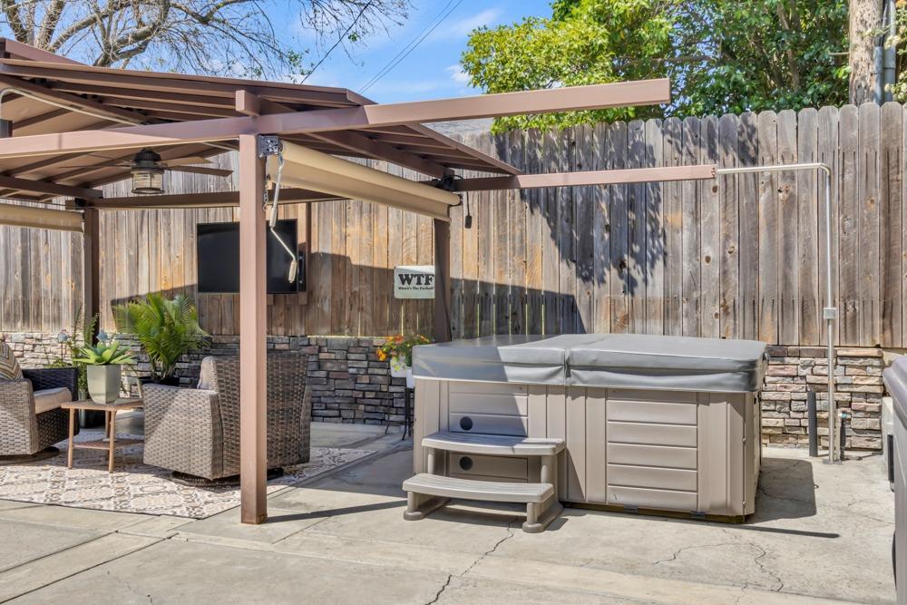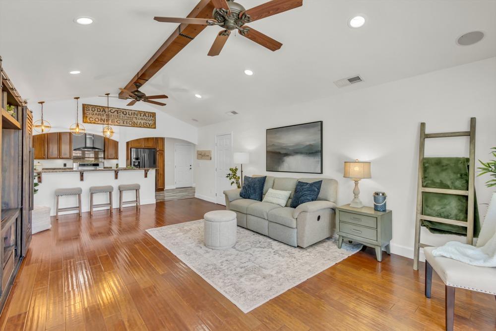 Welcome to this meticulously updated single-story home with *owned solar and *dual RV parking, nestled on a quiet street in the heart of Orangevale! Offering *1,712 square feet of well-designed living space, this 3-bedroom, 2-bathroom home blends comfort and functionality and is ideal for everyday living or entertaining. Step into a bright, airy living area featuring a cozy fireplace and open layout that flows into the dining area and kitchen. The kitchen with a *chef's gas range provides ample cabinet storage, practical counter space, and a seamless connection to the dining area, perfect for gatherings or casual meals. The great room with exposed beams, real hardwood floors, and a pellet stove is ideal for gathering. The spacious primary suite includes an en-suite bathroom and ample closet space. Two additional bedrooms offer flexibility for guests or a home office. Dual-pane windows and a tankless water heater provide extra energy efficiency! Enjoy the outdoors in a private backyard with a hot tub, shade structure, dining, or relaxing space. An 8x12 storage shed adds functionality and extra space. Located near parks, schools, shopping, and dining, with easy access to major commuter routes. This Orangevale gem is move-in ready!