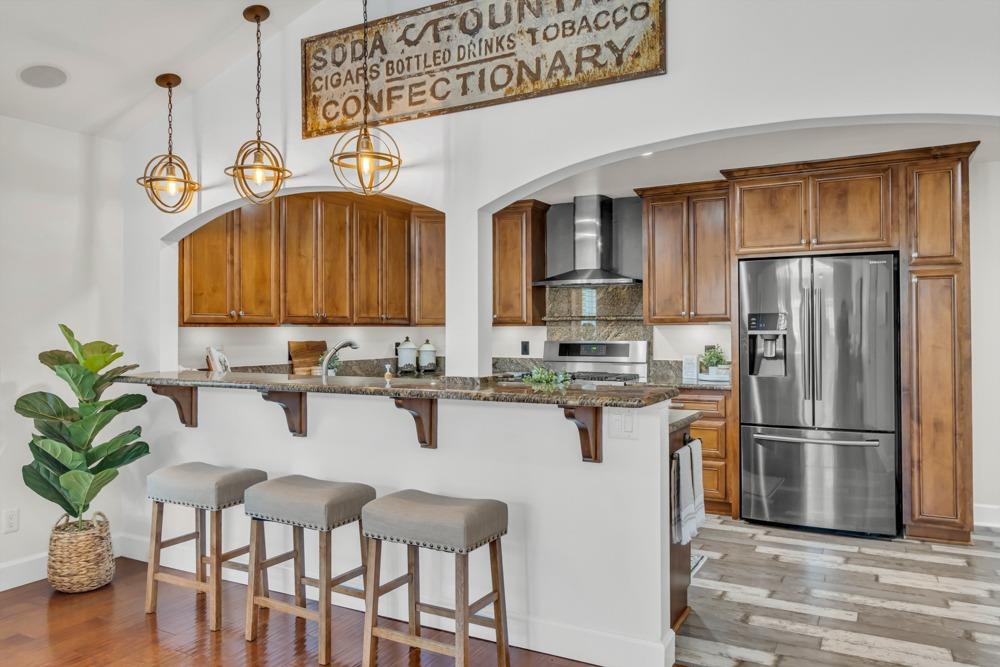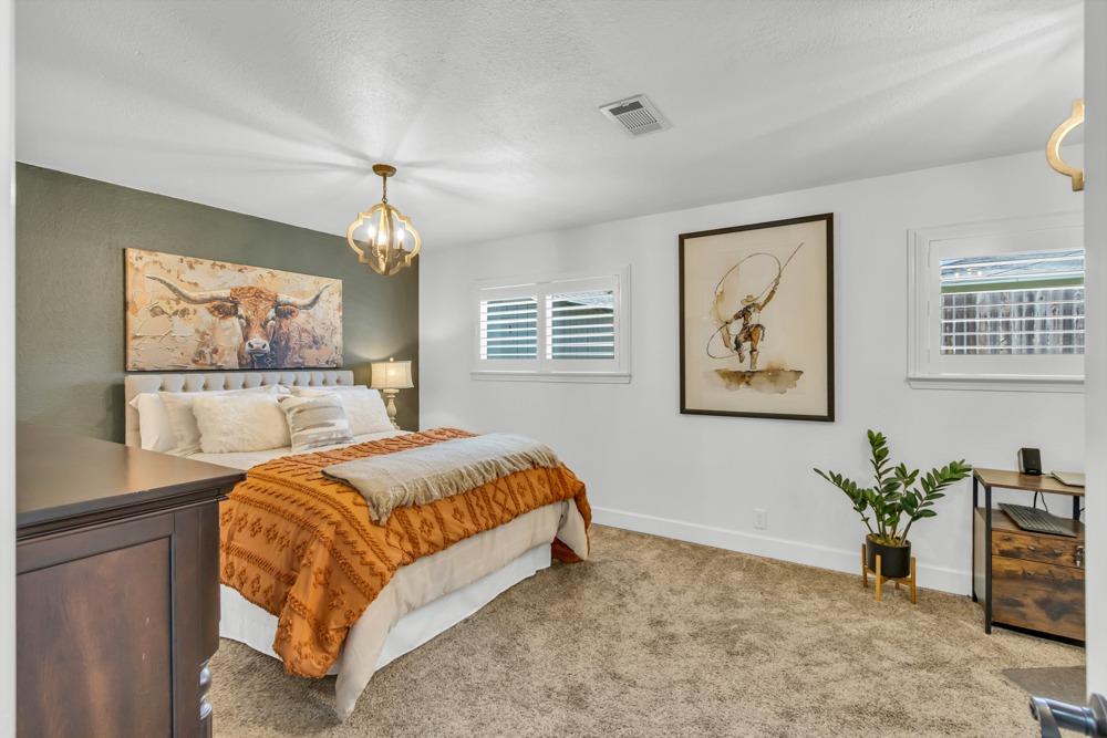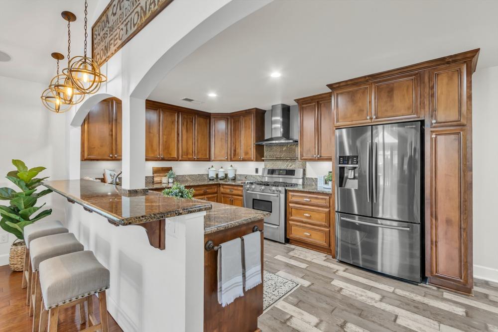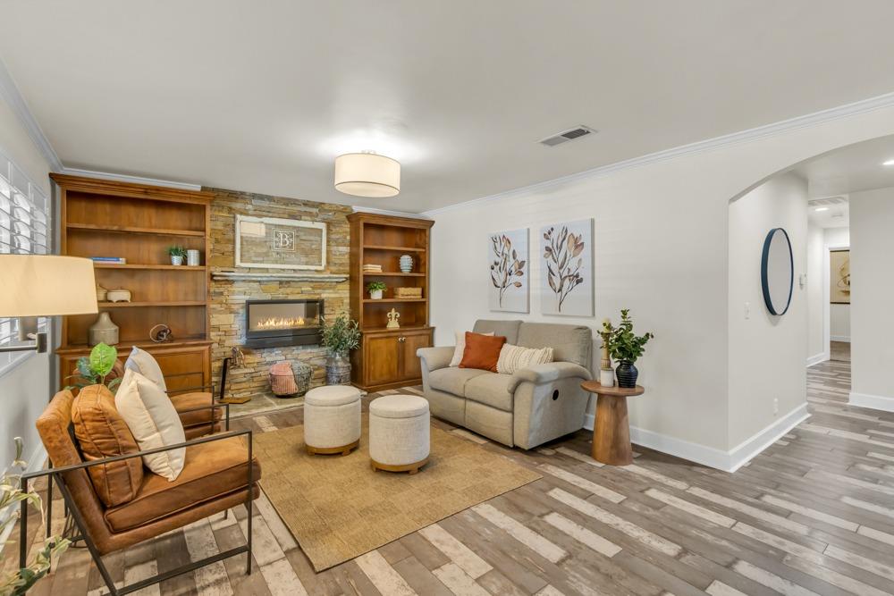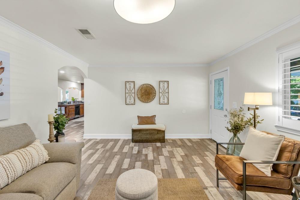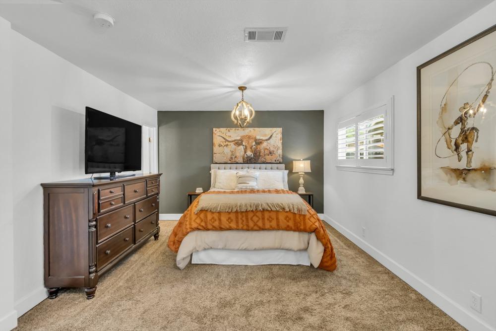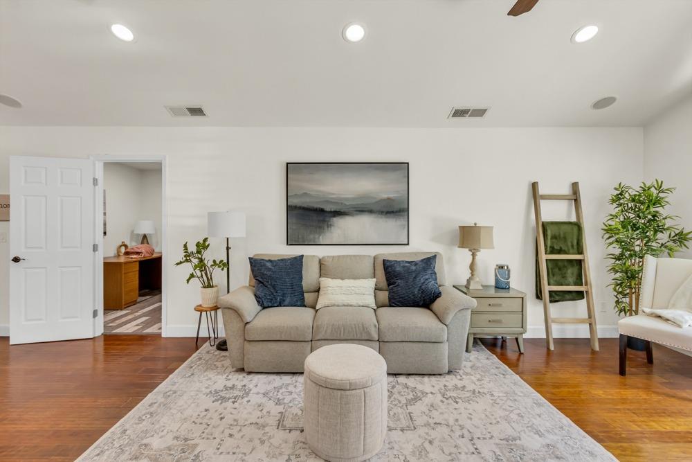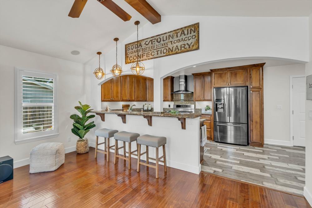 Welcome to this meticulously updated single-story home with *owned solar and *dual RV parking, nestled on a quiet street in the heart of Orangevale! Offering *1,712 square feet of well-designed living space, this 3-bedroom, 2-bathroom home blends comfort and functionality and is ideal for everyday living or entertaining. Step into a bright, airy living area featuring a cozy fireplace and open layout that flows into the dining area and kitchen. The kitchen with a *chef's gas range provides ample cabinet storage, practical counter space, and a seamless connection to the dining area, perfect for gatherings or casual meals. The great room with exposed beams, real hardwood floors, and a pellet stove is ideal for gathering. The spacious primary suite includes an en-suite bathroom and ample closet space. Two additional bedrooms offer flexibility for guests or a home office. Dual-pane windows and a tankless water heater provide extra energy efficiency! Enjoy the outdoors in a private backyard with a hot tub, shade structure, dining, or relaxing space. An 8x12 storage shed adds functionality and extra space. Located near parks, schools, shopping, and dining, with easy access to major commuter routes. This Orangevale gem is move-in ready!